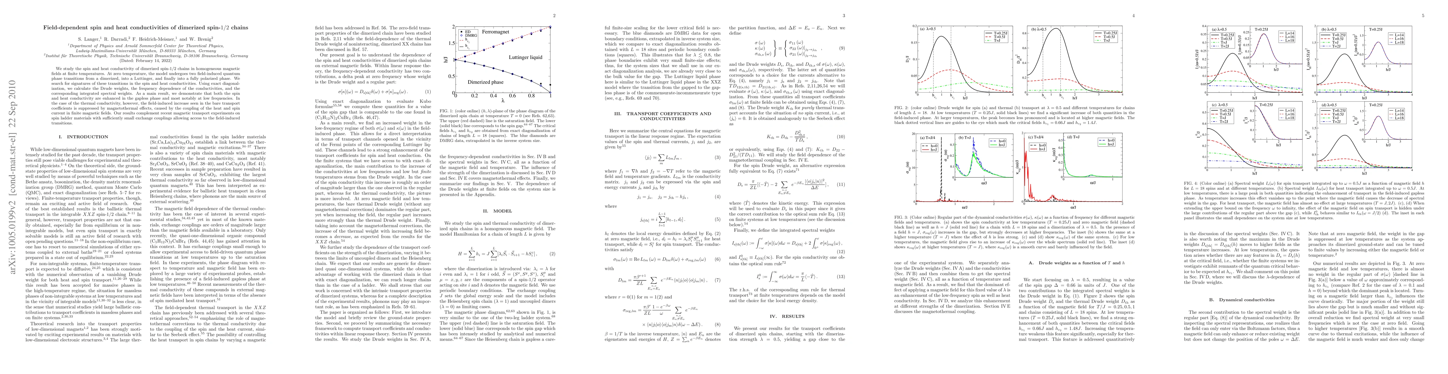 This paper investigates the spin and heat conductivities of dimerized spin-1/2 chains under magnetic fields, revealing enhanced conductivities in the gapless phase, especially at low frequencies. The study finds that magnetothermal effects suppress the increase in thermal conductivity despite the field-induced transitions.