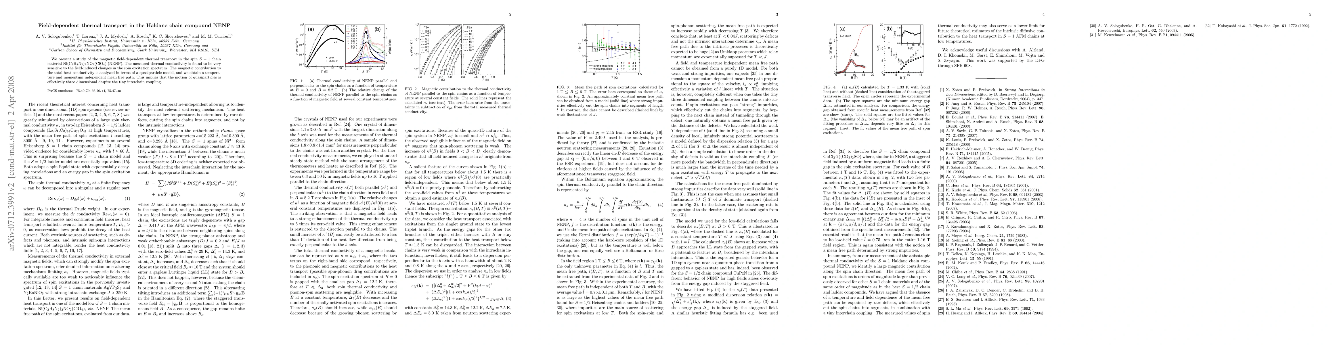 We present a study of the magnetic field-dependent thermal transport in the spin S=1 chain material Ni(C2H8N2)2NO2(ClO4) (NENP). The measured thermal conductivity is found to be very sensitive to the field-induced changes in the spin excitation spectrum. The magnetic contribution to the total heat conductivity is analyzed in terms of a quasiparticle model, and we obtain a temperature and momentum independent mean free path. This implies that the motion of quasiparticles is effectively three dimensional despite the tiny interchain coupling.