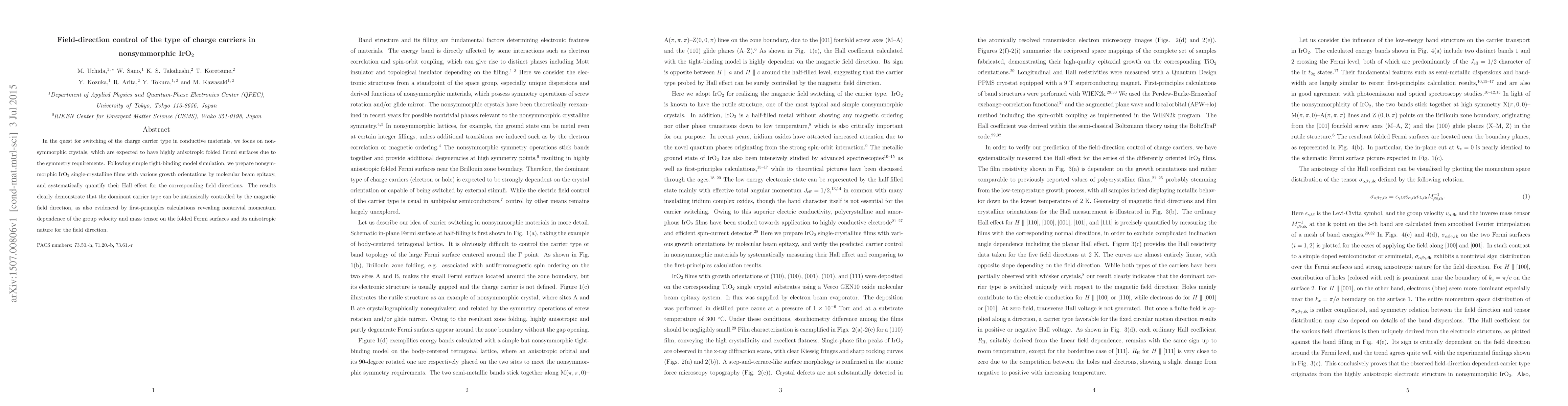 Researchers control the type of charge carriers in nonsymmorphic IrO2 crystals by altering the magnetic field direction, revealing a new way to switch between materials with high anisotropy.