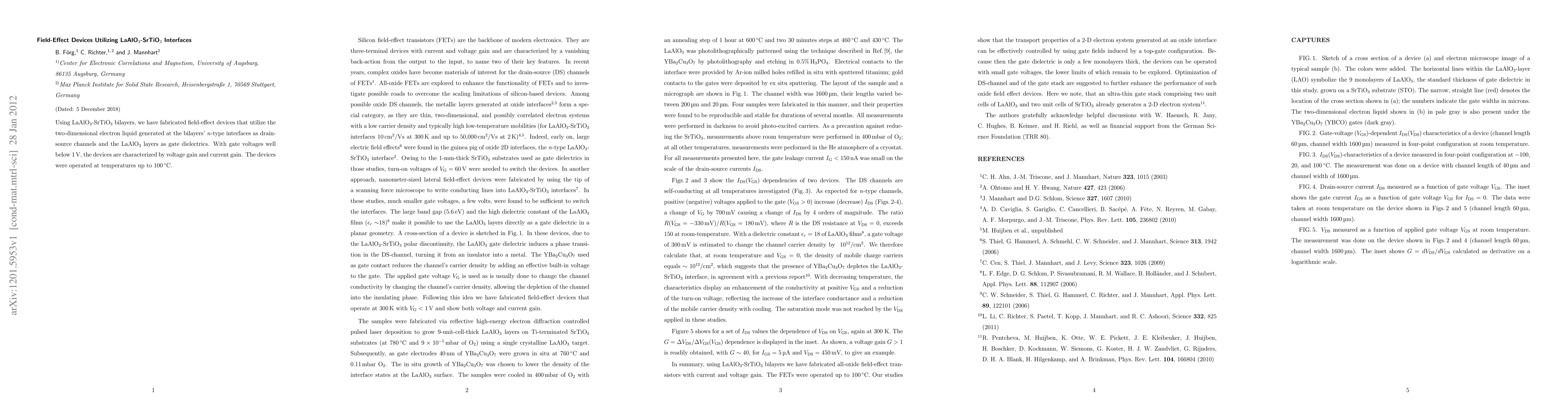 This research paper describes the fabrication and characterization of field-effect devices utilizing the two-dimensional electron liquid at LaAlO$_3$-SrTiO$_3$ interfaces, showing voltage and current gain with gate voltages below 1 V, and operational stability up to 100°C.