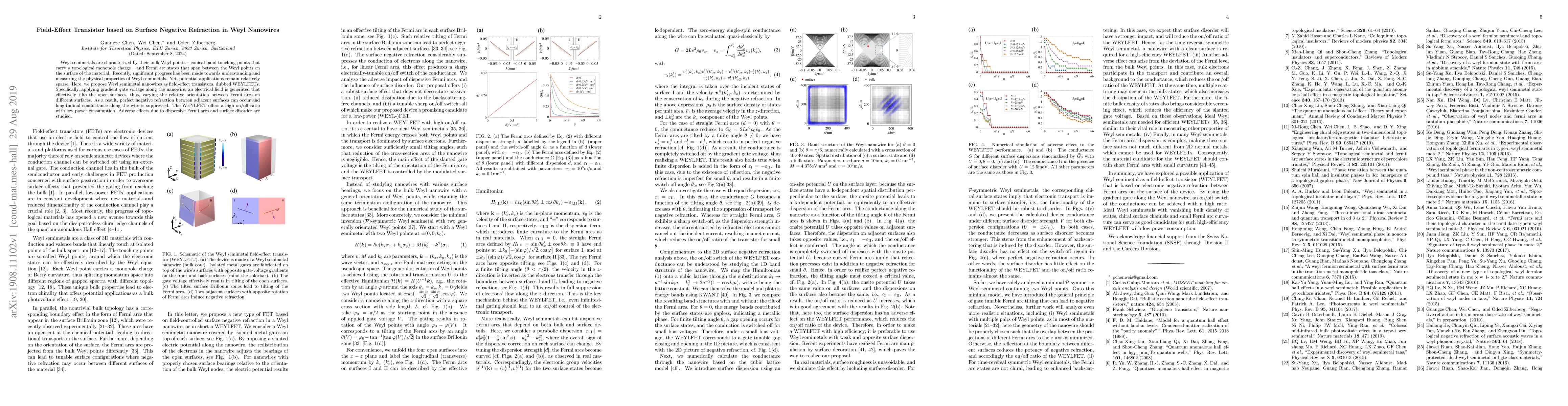 This paper proposes Weyl semimetal nanowires as novel field-effect transistors (WEYLFETs) that utilize surface negative refraction to achieve high on/off ratios and low power consumption. The applied gradient gate voltage tilts the Fermi arcs, enabling perfect negative refraction and suppressing longitudinal conductance.