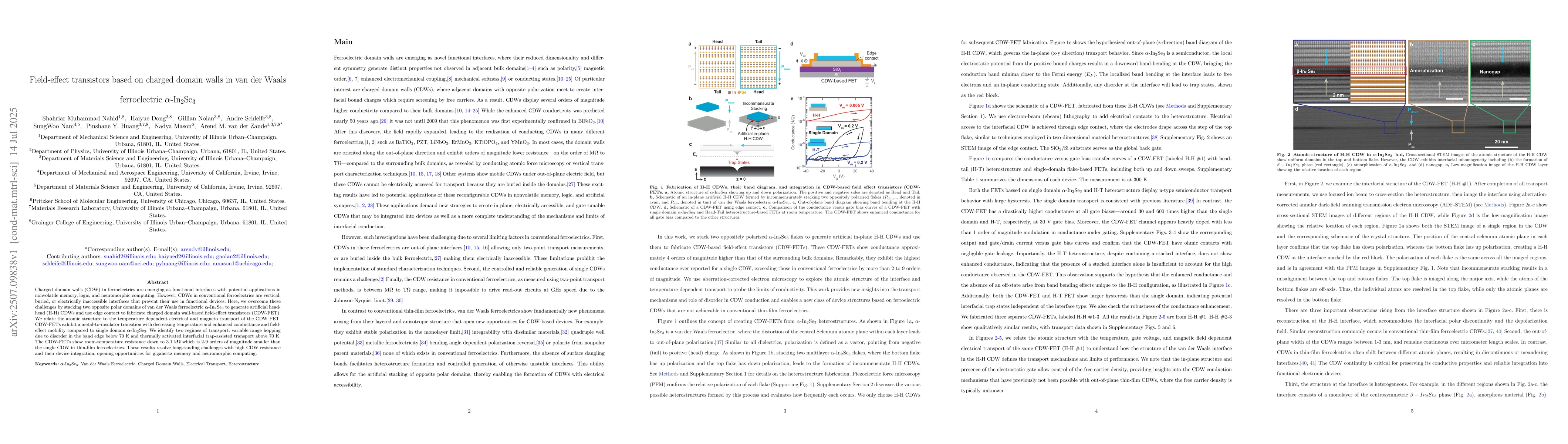 Charged domain walls (CDW) in ferroelectrics are emerging as functional interfaces with potential applications in nonvolatile memory, logic, and neuromorphic computing. However, CDWs in conventional ferroelectrics are vertical, buried, or electrically inaccessible interfaces that prevent their use in functional devices. Here, we overcome these challenges by stacking two opposite polar domains of van der Waals ferroelectric $\alpha$-In$_2$Se$_3$ to generate artificial head-head (H-H) CDWs and use edge contact to fabricate charged domain wall-based field-effect transistors (CDW-FET). We relate the atomic structure to the temperature-dependent electrical and magneto-transport of the CDW-FET. CDW-FETs exhibit a metal-to-insulator transition with decreasing temperature and enhanced conductance and field-effect mobility compared to single domain $\alpha$-In$_2$Se$_3$. We identify two regimes of transport: variable range hopping due to disorder in the band edge below 70 K and thermally activated interfacial trap-assisted transport above 70 K. The CDW-FETs show room-temperature resistance down to 3.1 k$\Omega$ which is 2-9 orders of magnitude smaller than the single CDW in thin-film ferroelectrics. These results resolve longstanding challenges with high CDW resistance and their device integration, opening opportunities for gigahertz memory and neuromorphic computing.