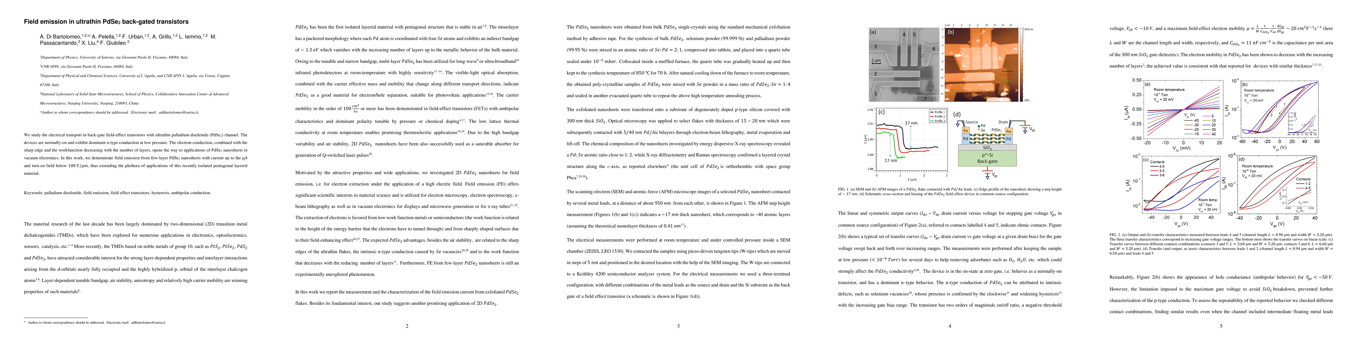 Researchers demonstrate field emission from ultrathin palladium diselenide nanosheets with record-low turn-on fields, paving the way for applications in vacuum electronics.