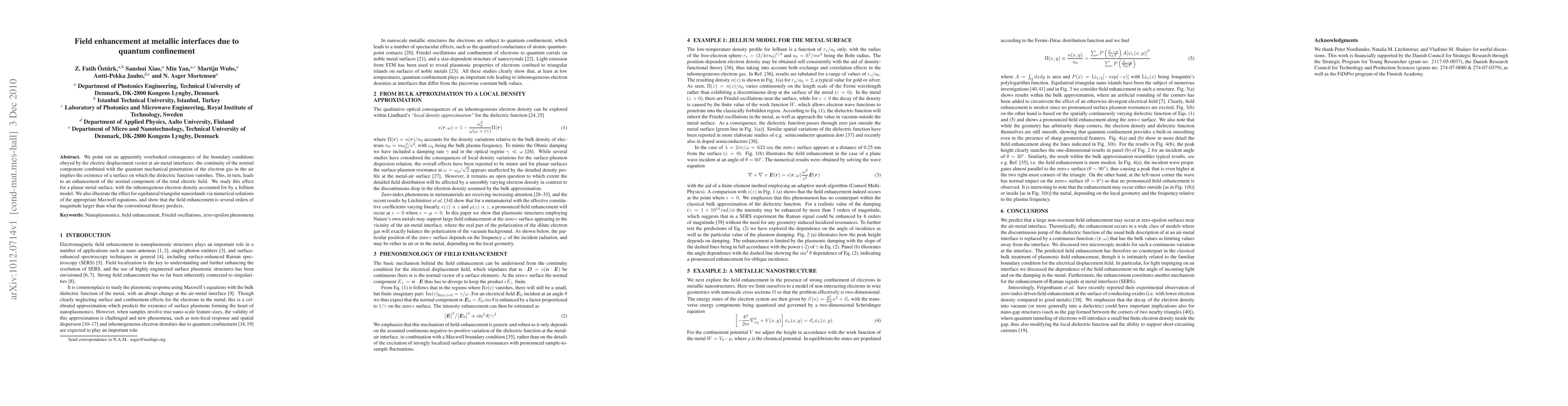 Research finds that metallic interfaces can enhance electric fields due to quantum confinement effects, leading to an increase in field strength several orders of magnitude beyond conventional theory predictions.