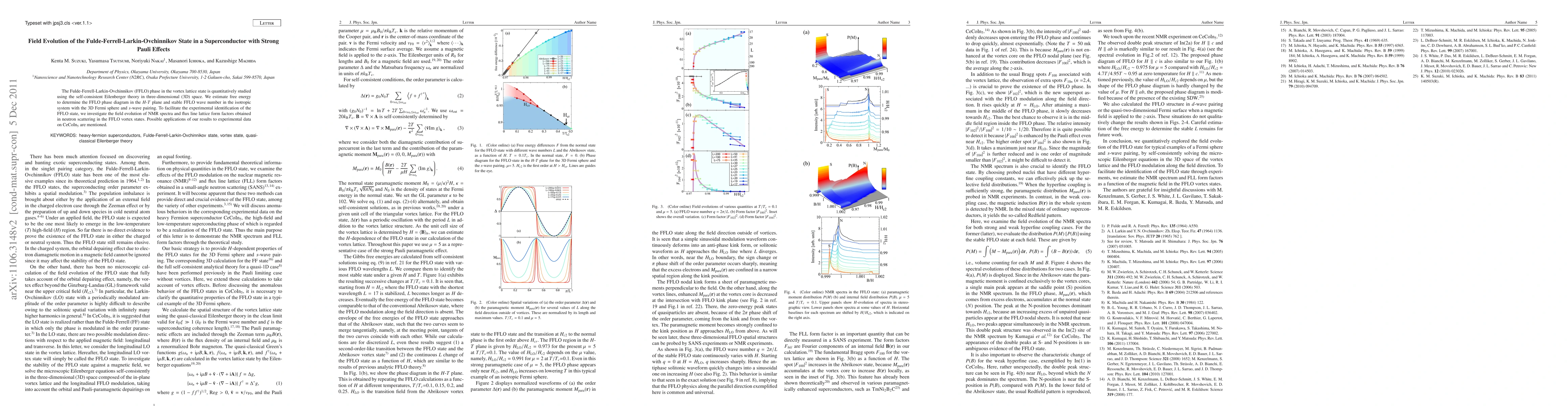 The Fulde-Ferrell-Larkin-Ovchinnikov (FFLO) phase in the vortex lattice state is quantitatively studied using the selfconsistent Eilenberger theory in three-dimensional (3D) space. We estimate free energy to determine the FFLO phase diagram in the H-T plane and stable FFLO wave number in the isotropic system with the 3D Fermi sphere and s-wave pairing. To facilitate the experimental identification of the FFLO state, we investigate the field evolution of NMR spectra and flux line lattice form factors obtained in neutron scattering in the FFLO vortex states. Possible applications of our results to experimental data on CeCoIn5 are mentioned.