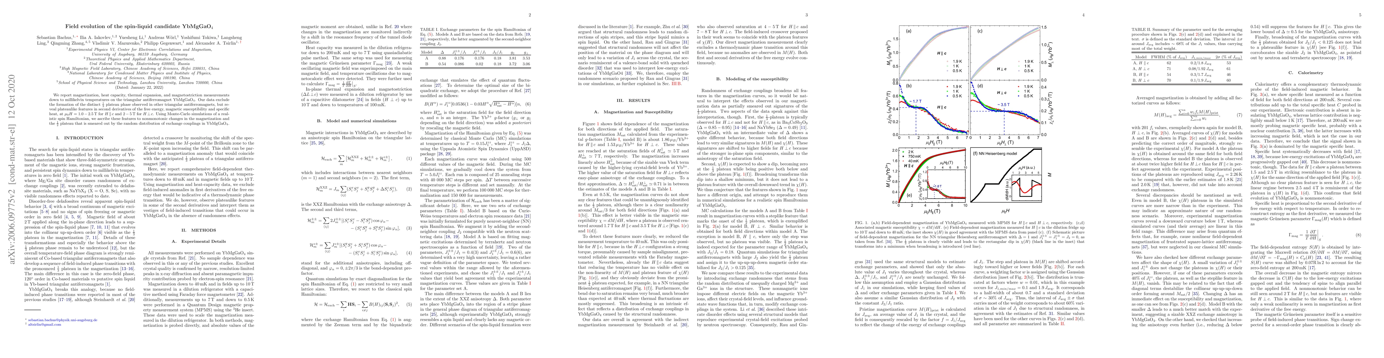 This study investigates YbMgGaO$_4$, a spin-liquid candidate, through magnetization, heat capacity, thermal expansion, and magnetostriction measurements. Contrary to other triangular antiferromagnets, it does not exhibit a $\frac13$ plateau phase but shows plateaulike features in second derivatives of free energy and susceptibility, attributed to nonmonotonic magnetization changes and smeared $\frac12$ plateau due to random exchange couplings.