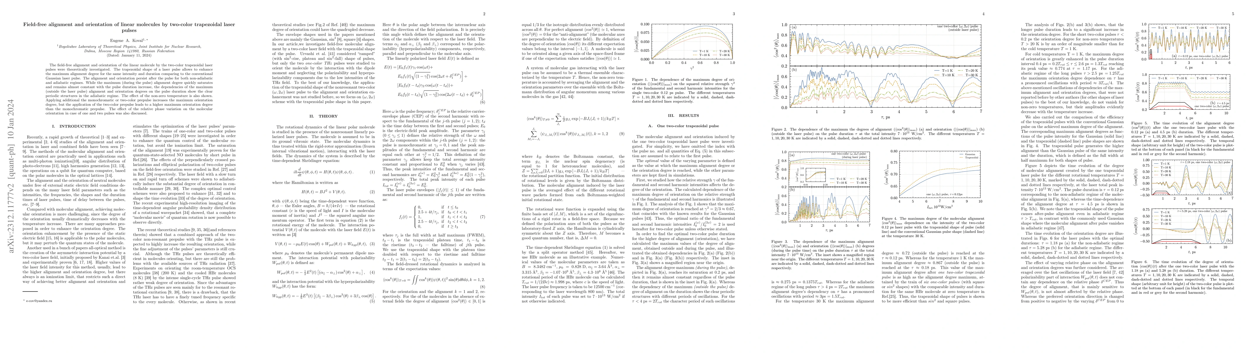 Development of a theoretical model demonstrating enhanced molecular alignment and orientation using two-color trapezoidal laser pulses.