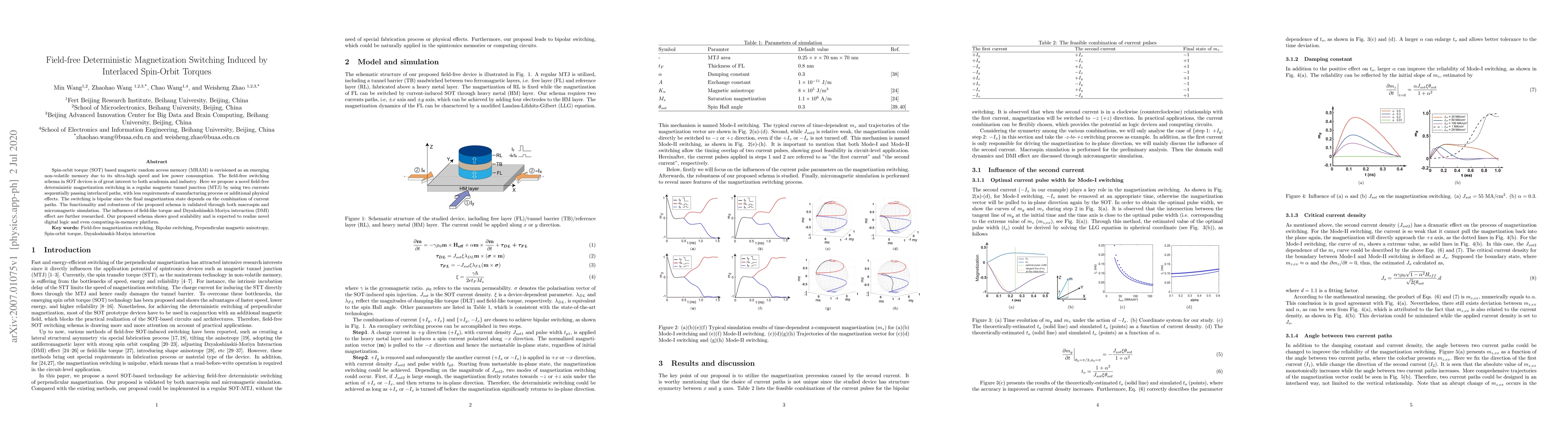 Researchers propose a novel method for deterministic magnetization switching in magnetic tunnel junctions without external magnetic fields, enabling ultra-high speed and low power consumption non-volatile memory.