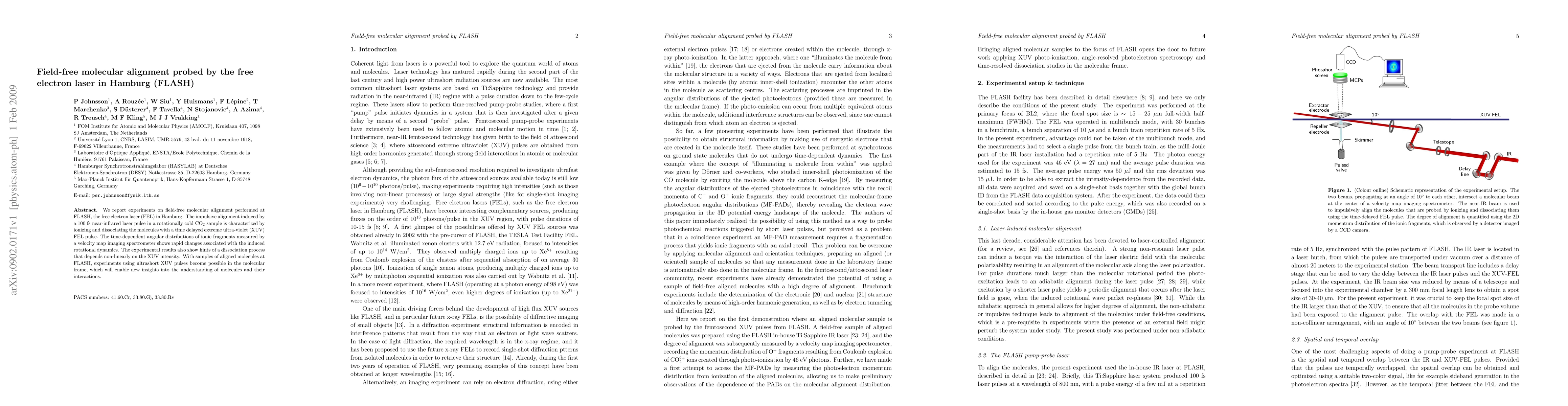 This research investigates field-free molecular alignment using a 100 fs near-infrared laser pulse at FLASH FEL in Hamburg, characterized by ionizing CO_2 with a time-delayed XUV pulse. The study reveals rapid rotational dynamics and hints of intensity-dependent dissociation, paving the way for new insights into molecular interactions.