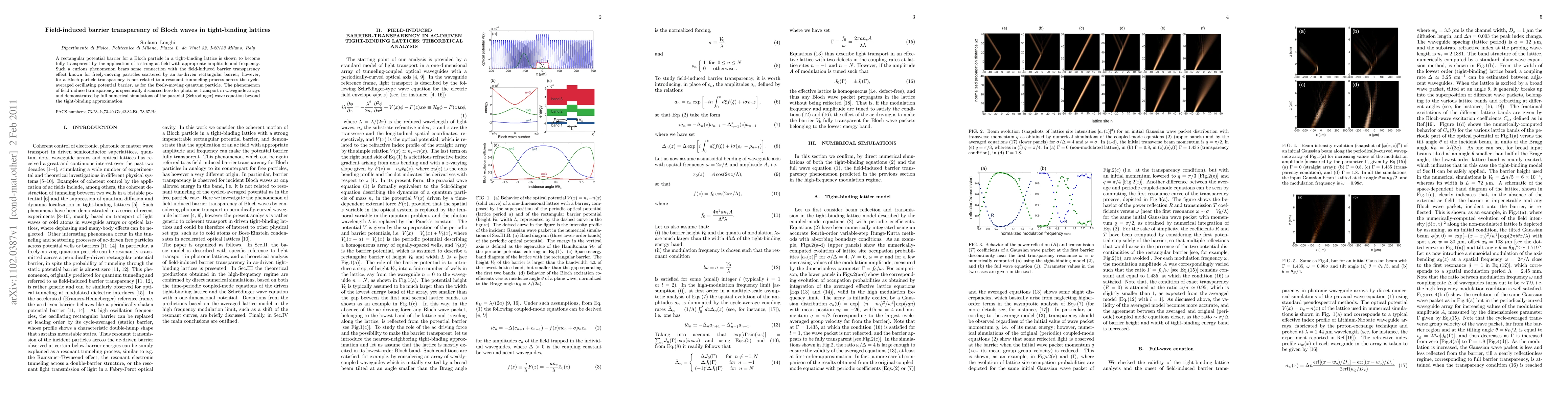 This paper explores how a strong alternating current (ac) field can make a rectangular potential barrier in a tight-binding lattice fully transparent for Bloch waves, a phenomenon distinct from resonant tunneling. The study is demonstrated through numerical simulations of photonic transport in waveguide arrays, extending beyond the tight-binding approximation.