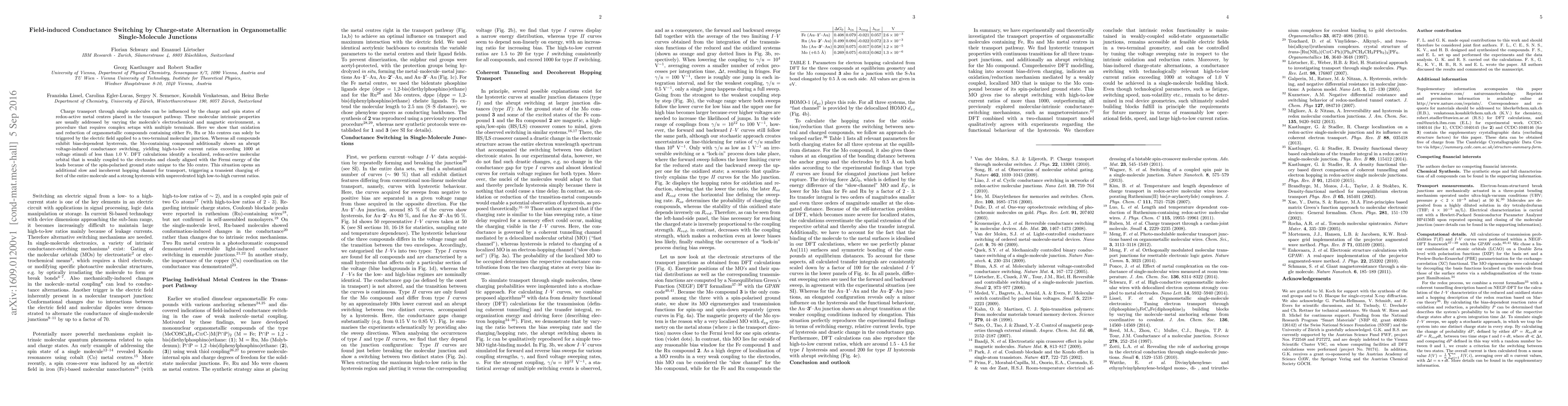 This paper demonstrates that electric fields can induce conductance switching in organometallic single-molecule junctions through charge-state alternation, particularly in compounds with Mo centres. The Mo-containing compound exhibits voltage-induced conductance switching with high current ratios, attributed to a localized redox-active molecular orbital aligned with the Fermi energy.