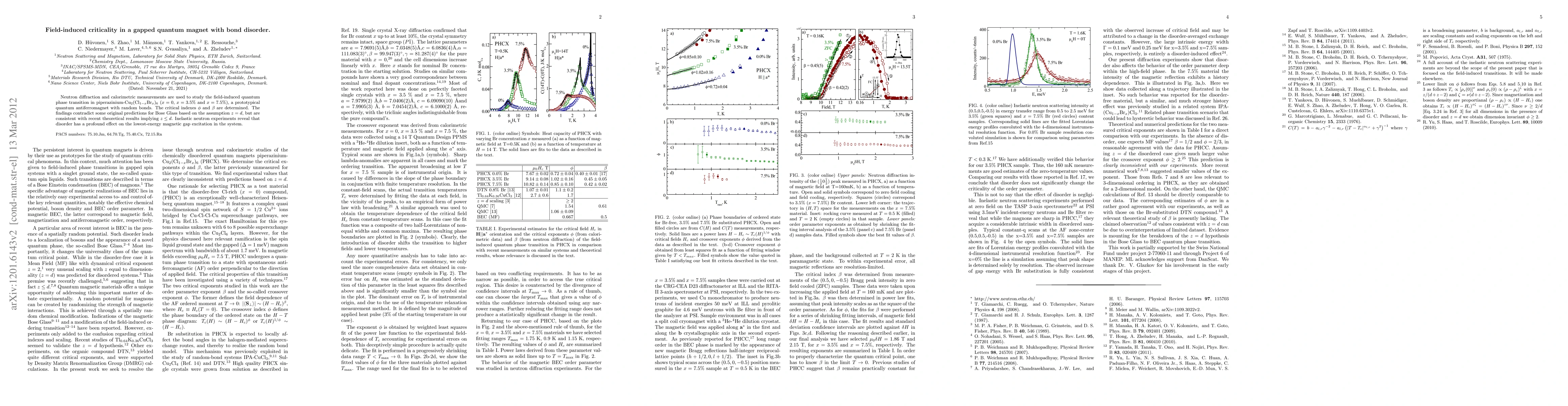 This study investigates the field-induced quantum phase transition in a quantum antiferromagnet with bond disorder using neutron diffraction and calorimetric measurements. The results reveal critical behavior inconsistent with original Bose Glass predictions but align with recent theories suggesting lower dimensionality for disorder effects.