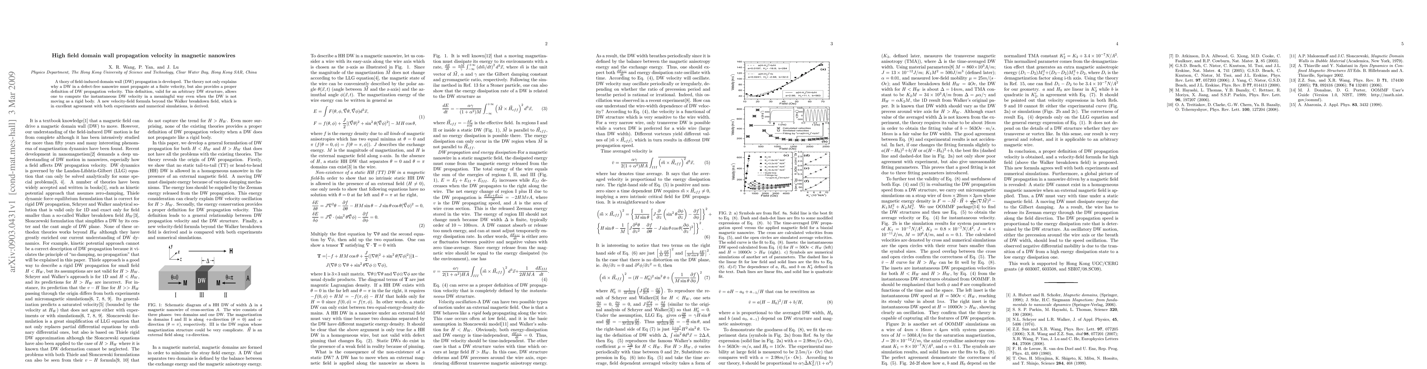 The research develops a theory explaining field-induced domain wall propagation in magnetic nanowires, defining DW velocity for arbitrary DW structures, and deriving a new velocity-field formula that aligns well with experimental and simulation data beyond the Walker breakdown field.