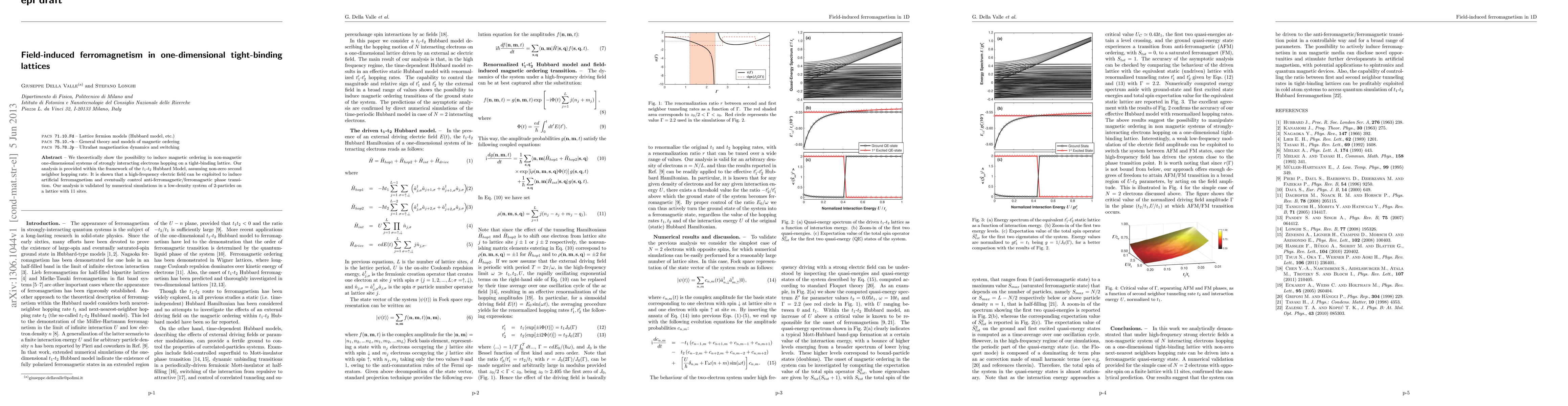 We theoretically show the possibility to induce magnetic ordering in non-magnetic one-dimensional systems of strongly interacting electrons hopping on a tight-binding lattice. Our analysis is provided within the framework of the t1-t2 Hubbard Model, assuming non-zero second neighbor hopping rate. It is shown that a high-frequency electric field can be exploited to induce artificial ferromagnetism and eventually control anti-ferromagnetic/ferromagnetic phase transition. Our analysis is validated by numerical simulations in a low-density system of 2-particles on a lattice with 11 sites.