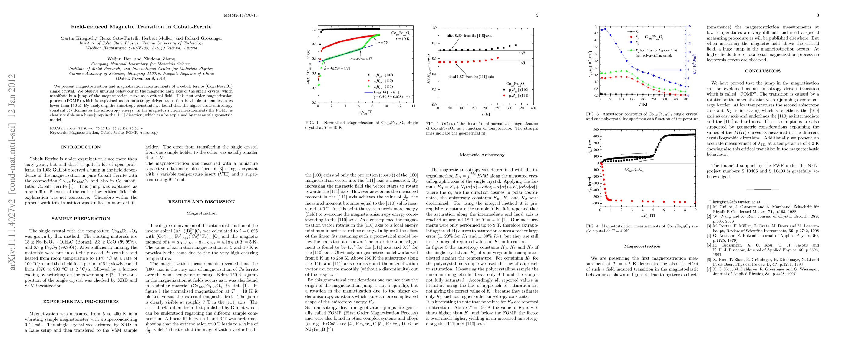 Researchers observed a first-order magnetization process in cobalt ferrite at temperatures below 150 K, driven by anisotropy, and found that the higher order anisotropy constant K2 dominated the transition.