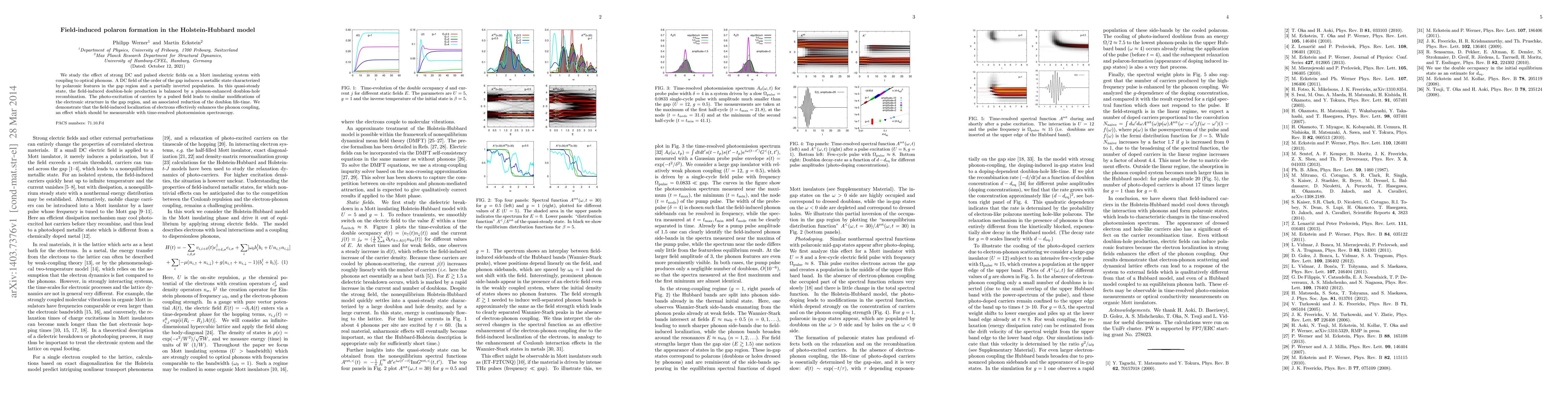 We study the effect of strong DC and pulsed electric fields on a Mott insulating system with coupling to optical phonons. A DC field of the order of the gap induces a metallic state characterized by polaronic features in the gap region and a partially inverted population. In this quasi-steady state, the field-induced doublon-hole production is balanced by a phonon-enhanced doublon-hole recombination. The photo-excitation of carriers by a pulsed field leads to similar modifications of the electronic structure in the gap region, and an associated reduction of the doublon life-time. We demonstrate that the field-induced localization of electrons effectively enhances the phonon coupling, an effect which should be measureable with time-resolved photoemission spectroscopy.