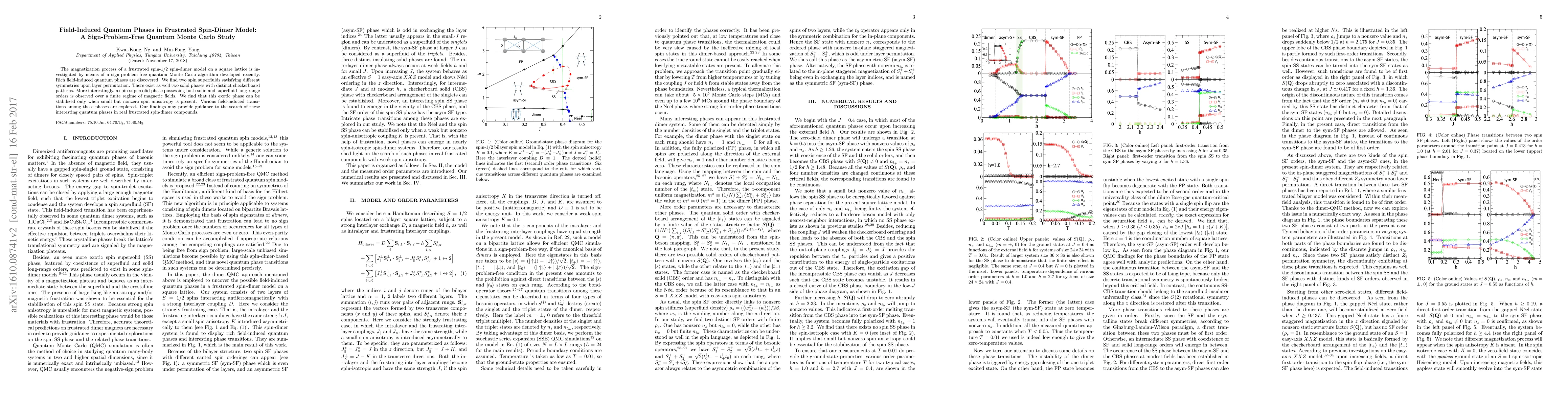 This study employs a sign-problem-free quantum Monte Carlo method to investigate the magnetization process of a frustrated spin-dimer model, revealing rich field-induced quantum phases including spin superfluids, solid phases, and spin supersolids, with potential implications for real-world spin-dimer compounds.