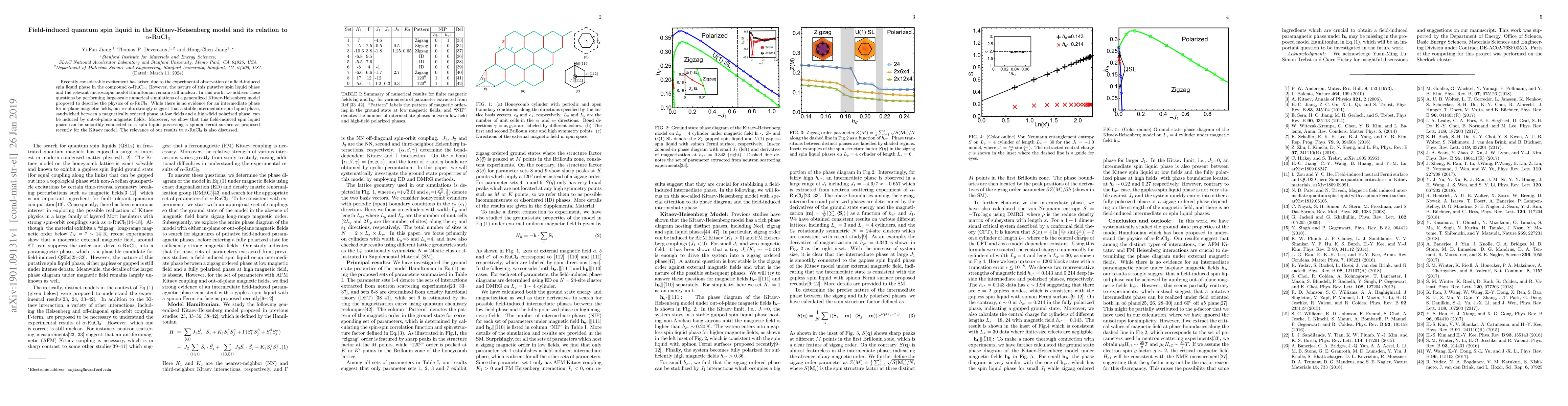 This paper reports large-scale numerical simulations of a generalized Kitaev-Heisenberg model, suggesting a stable field-induced spin liquid phase in $\alpha$-RuCl$_3$ induced by out-of-plane magnetic fields, and connects it to a spin liquid with a spinon Fermi surface.