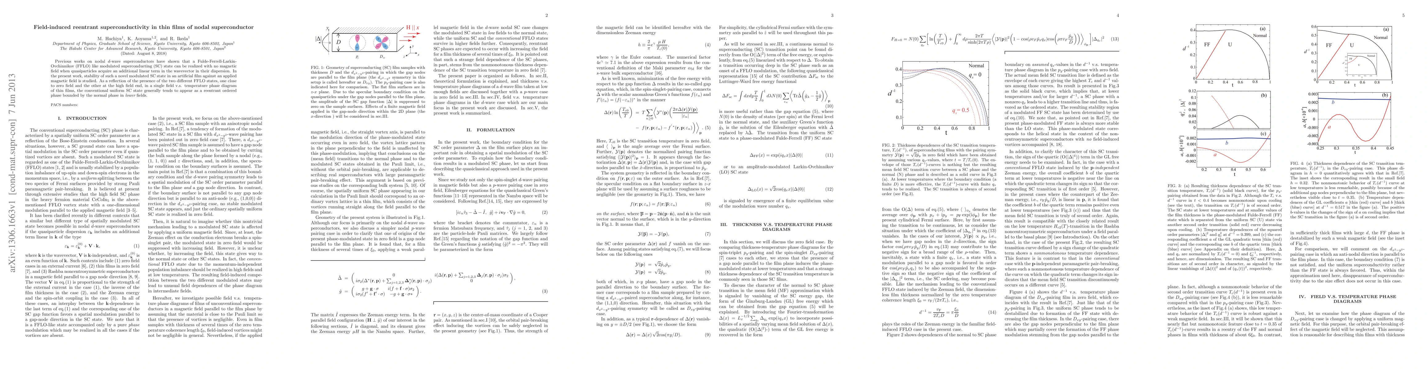 This paper investigates the stability of a modulated superconducting state in thin films of nodal d-wave superconductors under applied magnetic fields, revealing a reentrant superconductivity phenomenon where the conventional uniform SC state reappears in lower fields after transitioning through a Fulde-Ferrell-Larkin-Ovchinnikov (FFLO) state at higher fields.