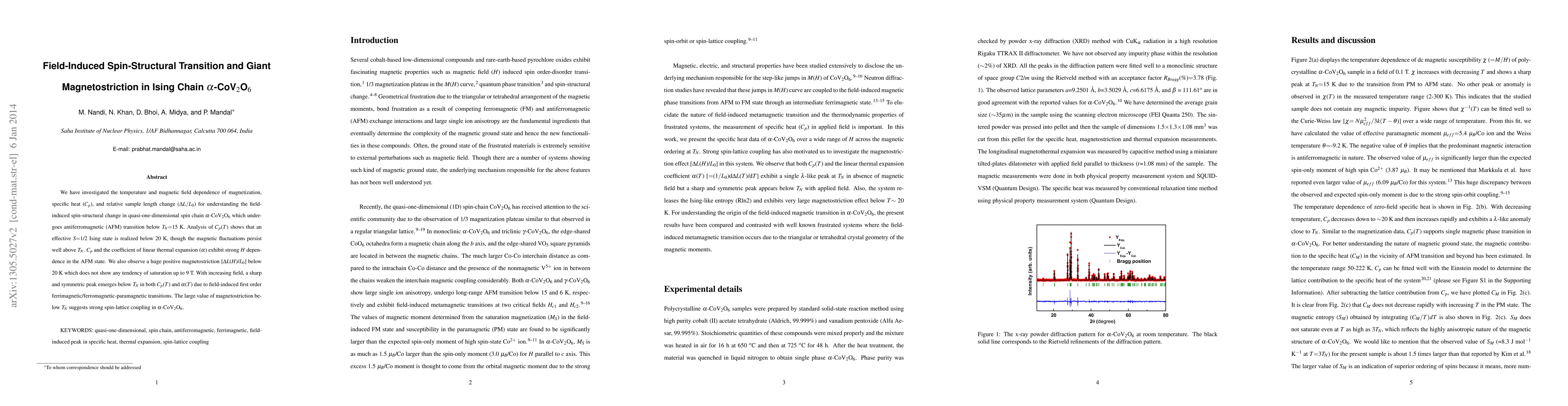The research examines the magnetic field effects on the quasi-one-dimensional spin chain compound, α-CoV2O6, revealing a field-induced spin-structural transition. Key findings include the emergence of an effective S=1/2 Ising state below 20K, strong magnetic field dependence in specific heat and thermal expansion, and a significant, non-saturating magnetostriction. These results highlight strong spin-lattice coupling in α-CoV2O6.