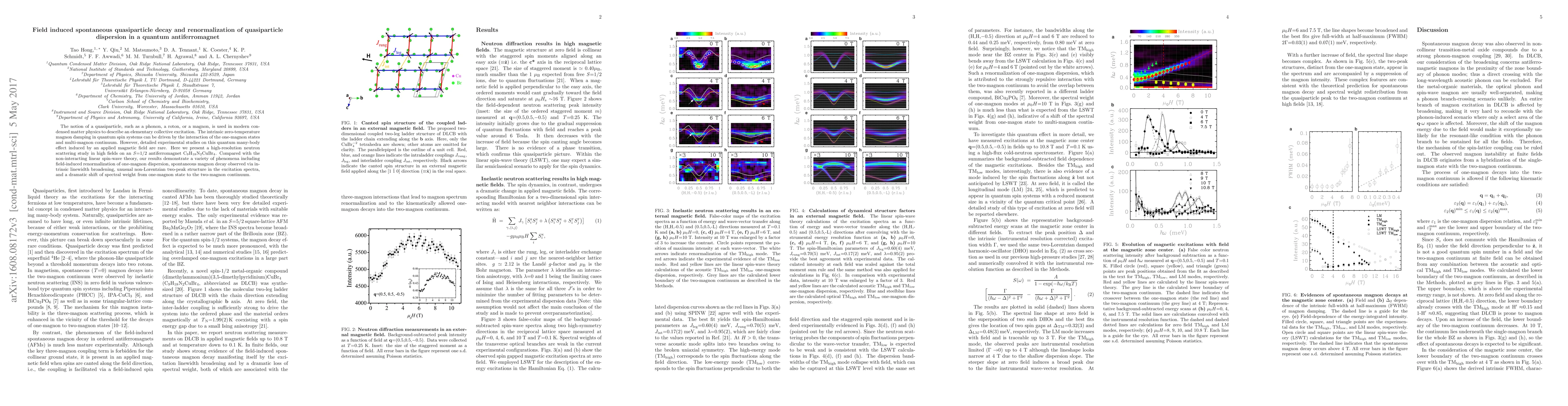 The notion of a quasiparticle, such as a phonon, a roton, or a magnon, is used in modern condensed matter physics to describe an elementary collective excitation. The intrinsic zero-temperature magnon damping in quantum spin systems can be driven by the interaction of the one-magnon states and multi-magnon continuum. However, detailed experimental studies on this quantum many-body effect induced by an applied magnetic field are rare. Here we present a high-resolution neutron scattering study in high fields on an S=1/2 antiferromagnet C9H18N2CuBr4. Compared with the non-interacting linear spin-wave theory, our results demonstrate a variety of phenomena including field-induced renormalization of one-magnon dispersion, spontaneous magnon decay observed via intrinsic linewidth broadening, unusual non-Lorentzian two-peak structure in the excitation spectra, and a dramatic shift of spectral weight from one-magnon state to the two-magnon continuum.