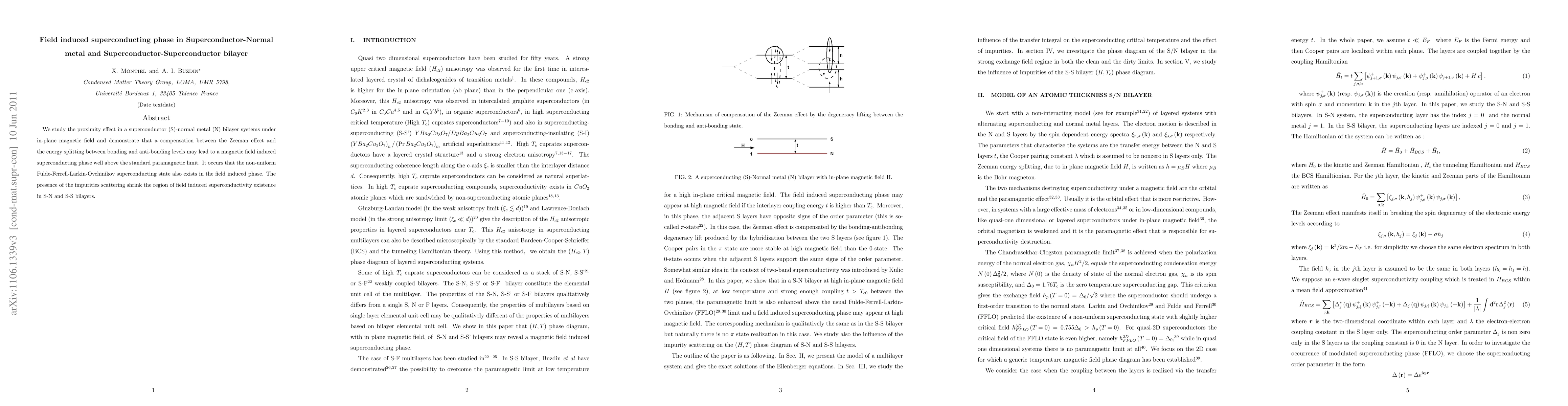 This paper investigates the proximity effect in superconductor-normal metal (S-N) and superconductor-superconductor (S-S) bilayers under an in-plane magnetic field, revealing a magnetic field-induced superconducting phase above the paramagnetic limit due to a balance between the Zeeman effect and energy splitting. It also shows that non-magnetic impurities reduce the region of field-induced superconductivity in both bilayer types.