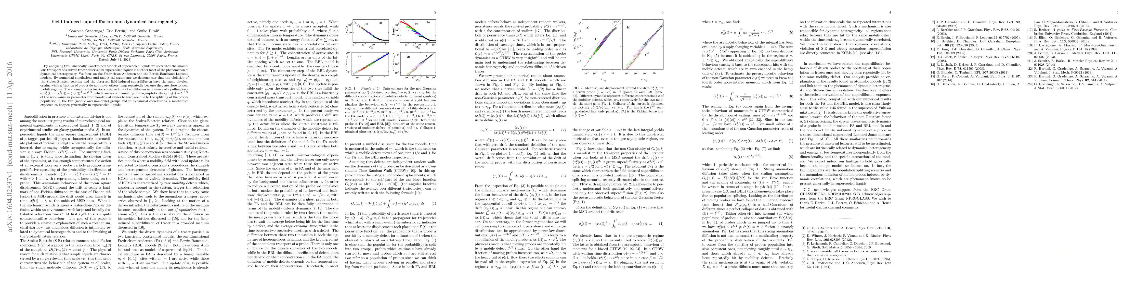 By analyzing two Kinetically Constrained Models of supercooled liquids we show that the anomalous transport of a driven tracer observed in supercooled liquids is another facet of the phenomenon of dynamical heterogeneity. We focus on the Fredrickson-Andersen and the Bertin-Bouchaud-Lequeux models. By numerical simulations and analytical arguments we demonstrate that the violation of the Stokes-Einstein relation and the observed field-induced superdiffusion have the same physical origin: while a fraction of probes do not move, others jump repeatedly because they are close to local mobile regions. The anomalous fluctuations observed out of equilibrium in presence of a pulling force $\epsilon$, $\sigma_x^2(t) = \langle x_\epsilon^2(t) \rangle - \langle x_\epsilon(t) \rangle^2 \sim t^{3/2}$, which are accompanied by the asymptotic decay $\alpha_\epsilon(t)\sim t^{-1/2}$ of the non-Gaussian parameter from non-trivial values to zero, are due to the splitting of the probes population in the two (mobile and immobile) groups and to dynamical correlations, a mechanism expected to happen generically in supercooled liquids.