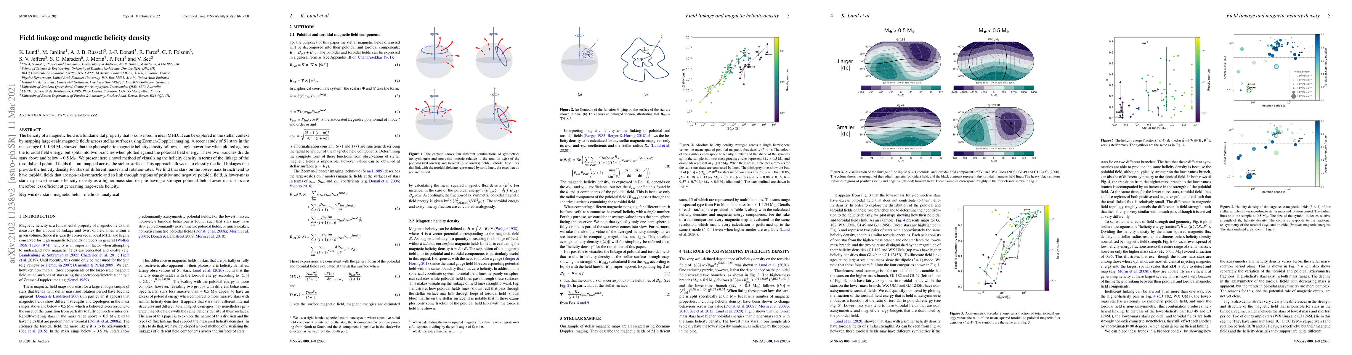 The helicity of a magnetic field is a fundamental property that is conserved in ideal MHD. It can be explored in the stellar context by mapping large-scale magnetic fields across stellar surfaces using Zeeman-Doppler imaging. A recent study of 51 stars in the mass range 0.1-1.34 M$_\odot$ showed that the photospheric magnetic helicity density follows a single power law when plotted against the toroidal field energy, but splits into two branches when plotted against the poloidal field energy. These two branches divide stars above and below $\sim$ 0.5 M$_\odot$. We present here a novel method of visualising the helicity density in terms of the linkage of the toroidal and poloidal fields that are mapped across the stellar surface. This approach allows us to classify the field linkages that provide the helicity density for stars of different masses and rotation rates. We find that stars on the lower-mass branch tend to have toroidal fields that are non-axisymmetric and so link through regions of positive and negative poloidal field. A lower-mass star may have the same helicity density as a higher-mass star, despite having a stronger poloidal field. Lower-mass stars are therefore less efficient at generating large-scale helicity.