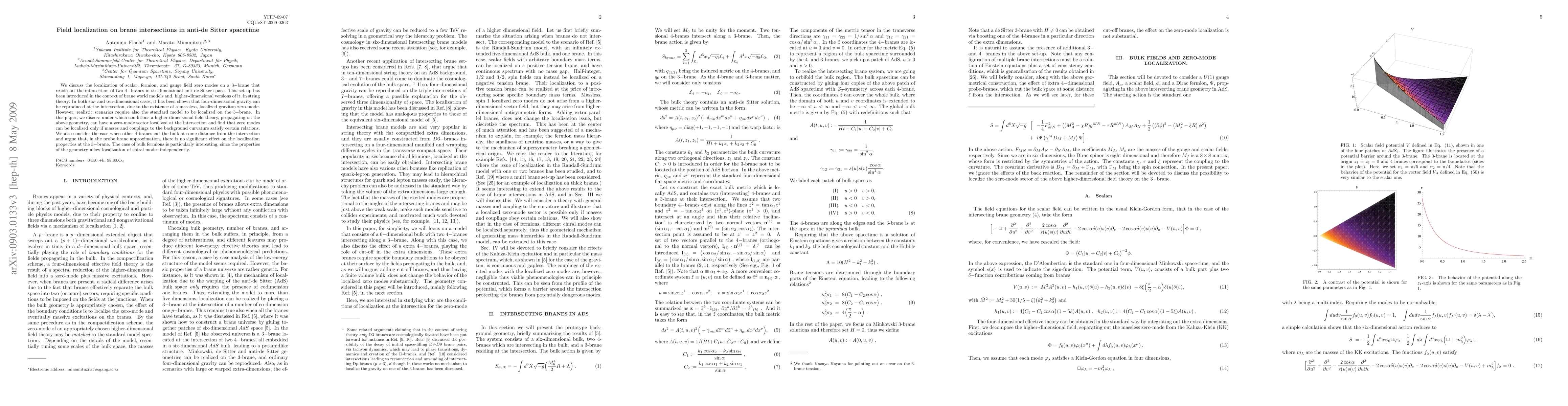 We discuss the localization of scalar, fermion, and gauge field zero modes on a $3-$brane that resides at the intersection of two $4-$branes in six-dimensional anti-de Sitter space. This set-up has been introduced in the context of brane world models and, higher-dimensional versions of it, in string theory. In both six- and ten-dimensional cases, it has been shown that four-dimensional gravity can be reproduced at the intersection, due to the existence of a massless, localized graviton zero-mode. However, realistic scenarios require also the Standard Model to be localized on the $3-$brane. In this paper, we discuss under which conditions a higher-dimensional field theory, propagating on the above geometry, can have a zero-mode sector localized at the intersection and find that zero modes can be localized only if masses and couplings to the background curvature satisfy certain relations. We also consider the case when other 4-branes cut the bulk at some distance from the intersection and argue that, in the probe brane approximation, there is no significant effect on the localization properties at the $3-$brane. The case of bulk fermions is particularly interesting, since the properties of the geometry allow localization of chiral modes independently.