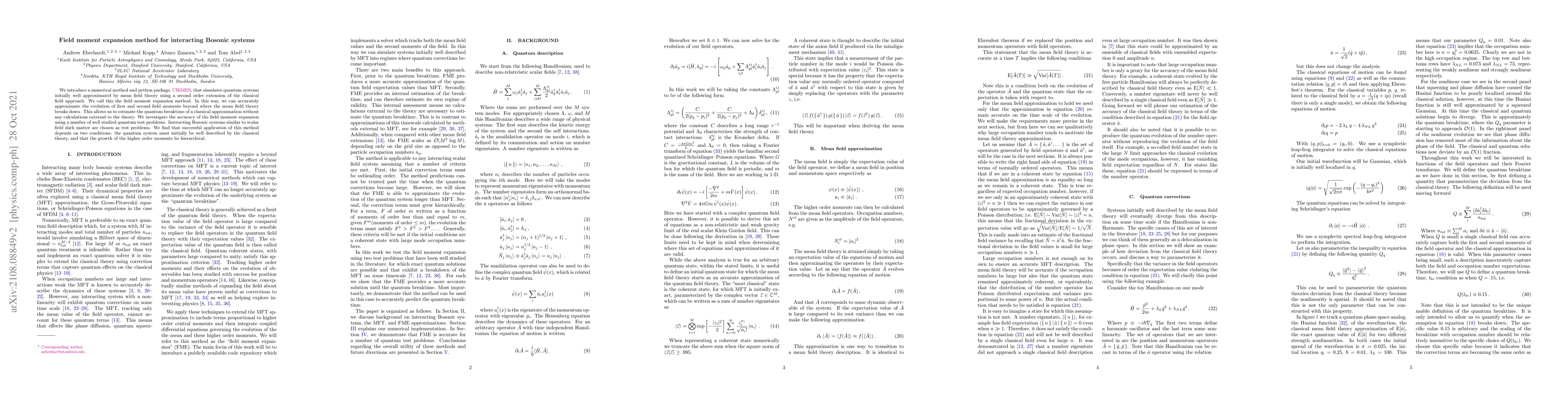We introduce a numerical method and python package, https://github.com/andillio/CHiMES, that simulates quantum systems initially well approximated by mean field theory using a second order extension of the classical field approach. We call this the field moment expansion method. In this way, we can accurately approximate the evolution of first and second field moments beyond where the mean field theory breaks down. This allows us to estimate the quantum breaktime of a classical approximation without any calculations external to the theory. We investigate the accuracy of the field moment expansion using a number of well studied quantum test problems. Interacting Bosonic systems similar to scalar field dark matter are chosen as test problems. We find that successful application of this method depends on two conditions: the quantum system must initially be well described by the classical theory, and that the growth of the higher order moments be hierarchical.