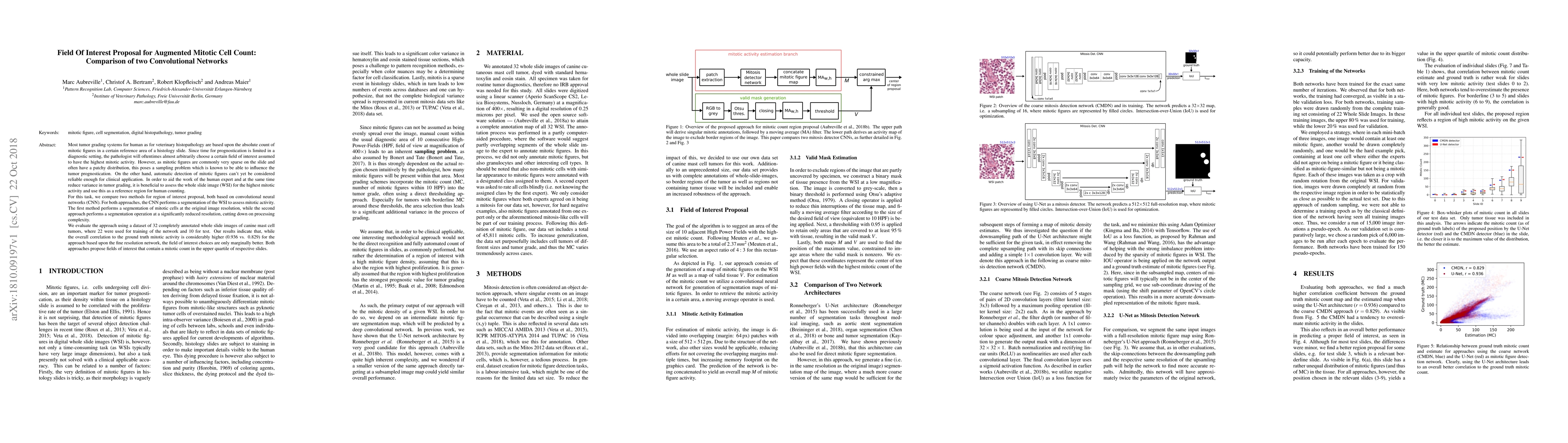 A novel U-Net architecture was proposed, which achieved state-of-the-art results in mitosis detection
