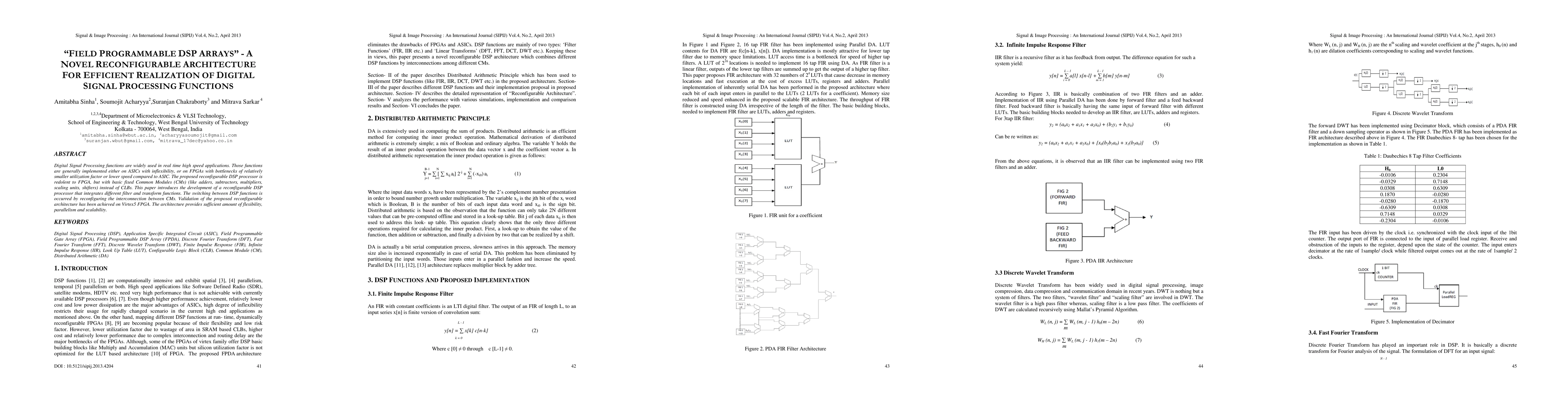 This paper proposes a novel reconfigurable DSP architecture using fixed Common Modules instead of FPGA CLBs, offering flexibility, parallelism, and scalability for efficient digital signal processing functions. The architecture was validated on a Virtex5 FPGA, demonstrating its potential to outperform traditional FPGA and ASIC implementations.