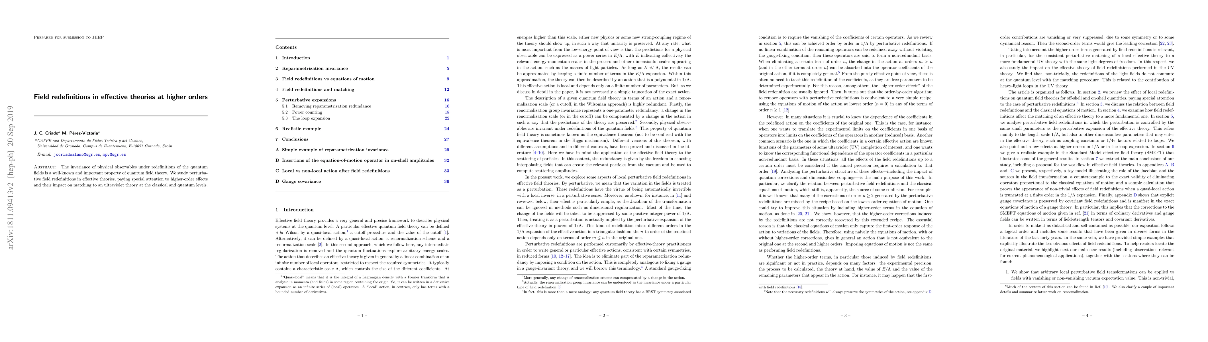 This paper explores the impact of perturbative field redefinitions on effective theories, focusing on higher-order effects and their influence on matching to an ultraviolet theory both classically and quantum mechanically. The study underscores the importance of field redefinitions in maintaining physical observables' invariance.
