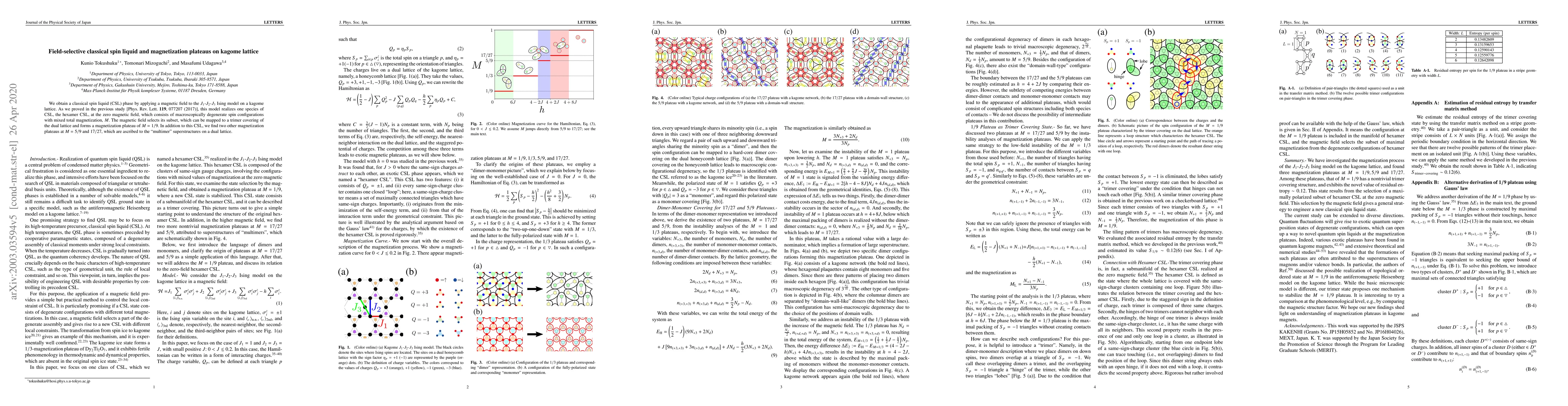 This study reveals a classical spin liquid phase in the $J_1$-$J_2$-$J_3$ Ising model on a kagome lattice under a magnetic field, forming magnetization plateaus at $M=1/9$, $5/9$, and $17/27$. These plateaus arise from field-selected subsets of the hexamer CSL and multimer superstructures on the dual lattice.