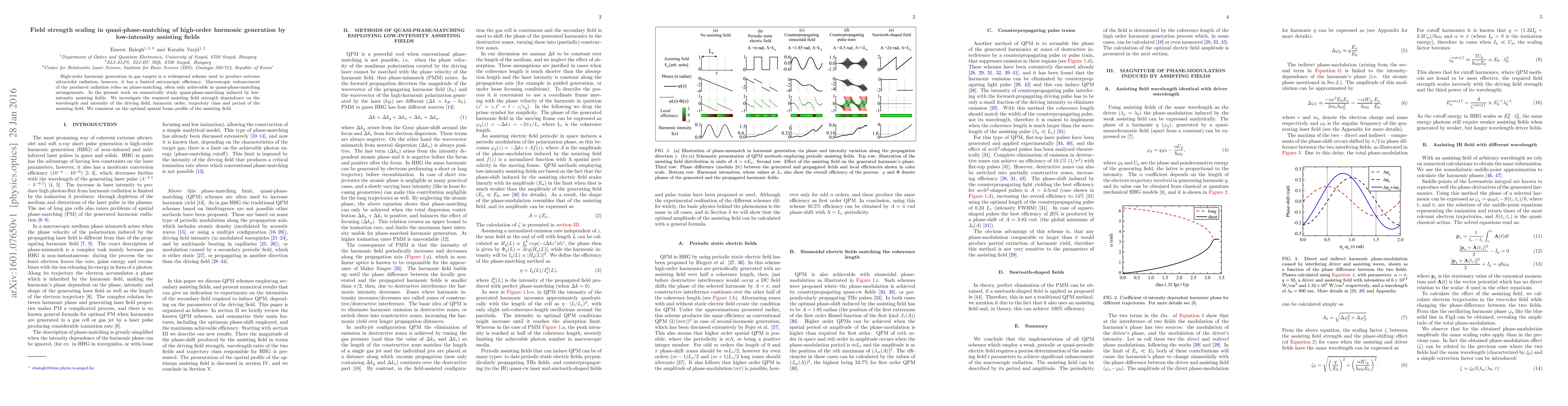 High-order harmonic generation in gas targets is a widespread scheme used to produce extreme ultraviolet radiation, however, it has a limited microscopic efficiency. Macroscopic enhancement of the produced radiation relies on phase-matching, often only achievable in quasi-phase-matching arrangements. In the present work we numerically study quasi-phase-matching induced by low-intensity assisting fields. We investigate the required assisting field strength dependence on the wavelength and intensity of the driving field, harmonic order, trajectory class and period of the assisting field. We comment on the optimal spatial beam profile of the assisting field.