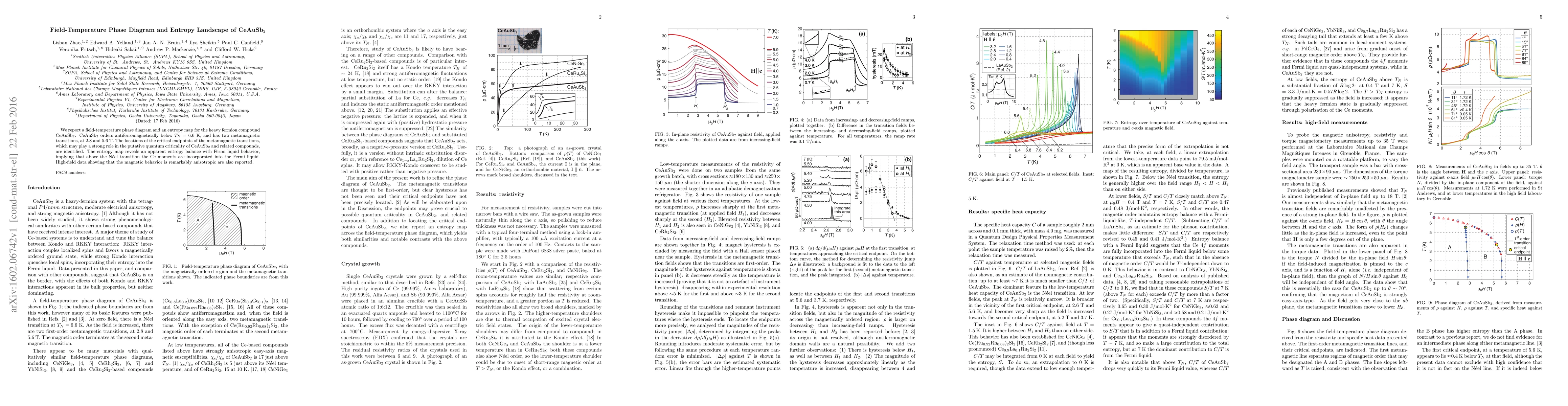 We report a field-temperature phase diagram and an entropy map for the heavy fermion compound CeAuSb$_2$. CeAuSb$_2$ orders antiferromagnetically below $T_N=6.6$~K, and has two metamagnetic transitions, at 2.8 and 5.6~T. The locations of the critical endpoints of the metamagnetic transitions, which may play a strong role in the putative quantum criticality of CeAuSb$_2$ and related compounds, are identified. The entropy map reveals an apparent entropy balance with Fermi liquid behavior, implying that above the N\'{e}el transition the Ce moments are incorporated into the Fermi liquid. High-field data showing that the magnetic behavior is remarkably anisotropic are also reported.