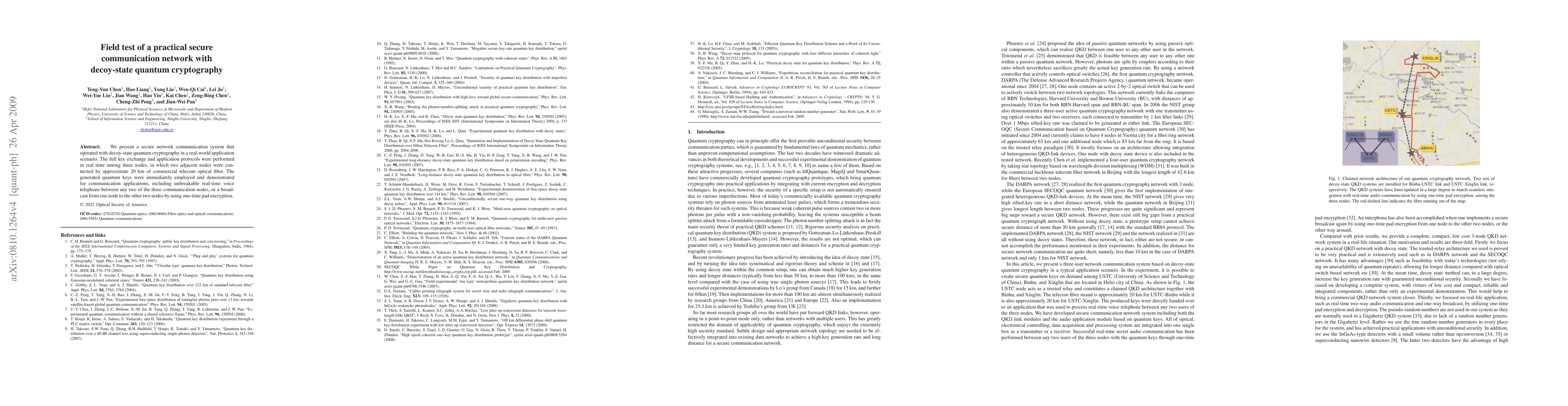 We present a secure network communication system that operated with decoy-state quantum cryptography in a real-world application scenario. The full key exchange and application protocols were performed in real time among three nodes, in which two adjacent nodes were connected by approximate 20 km of commercial telecom optical fiber. The generated quantum keys were immediately employed and demonstrated for communication applications, including unbreakable real-time voice telephone between any two of the three communication nodes, or a broadcast from one node to the other two nodes by using one-time pad encryption.