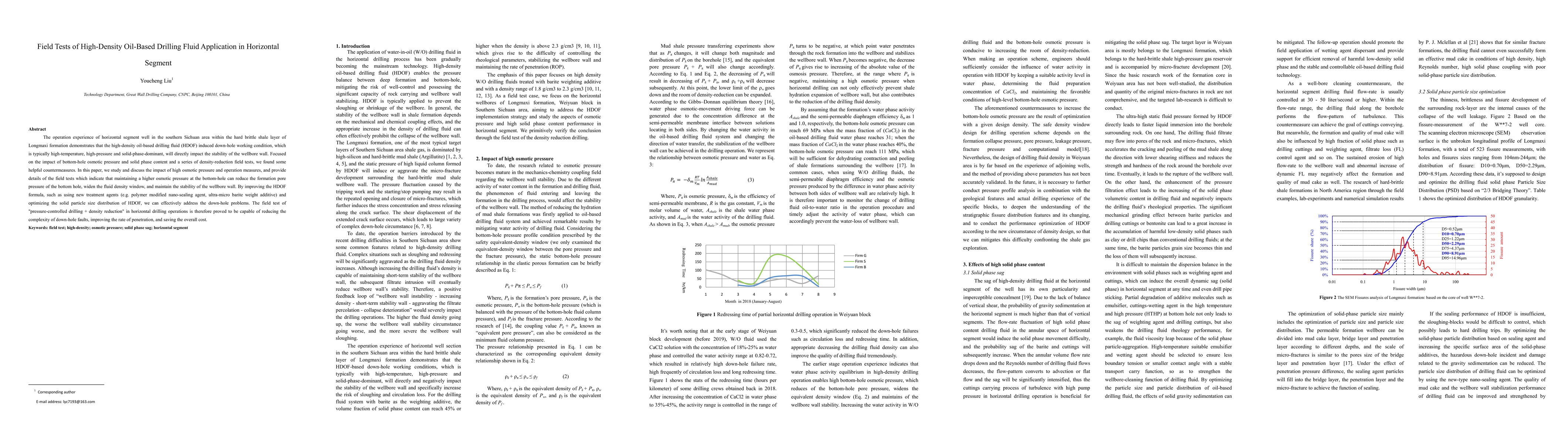 Researchers found that high-density oil-based drilling fluids can impact wellbore stability in horizontal segments, but maintaining higher osmotic pressure and optimizing fluid formula can help maintain stability.