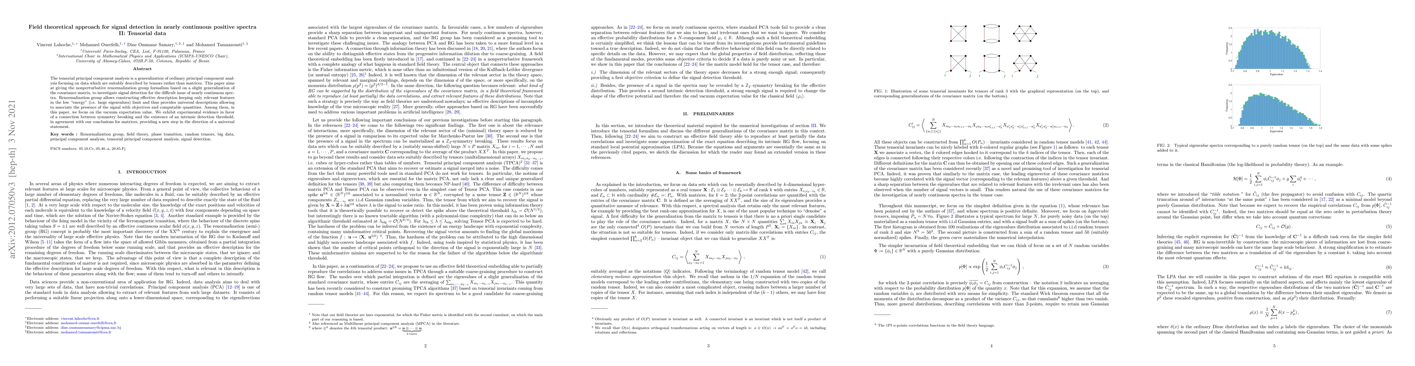 Researchers develop a new method to detect signals in nearly continuous positive spectra using tensorial principal component analysis, which can identify intrinsic detection thresholds based on vacuum expectation values.