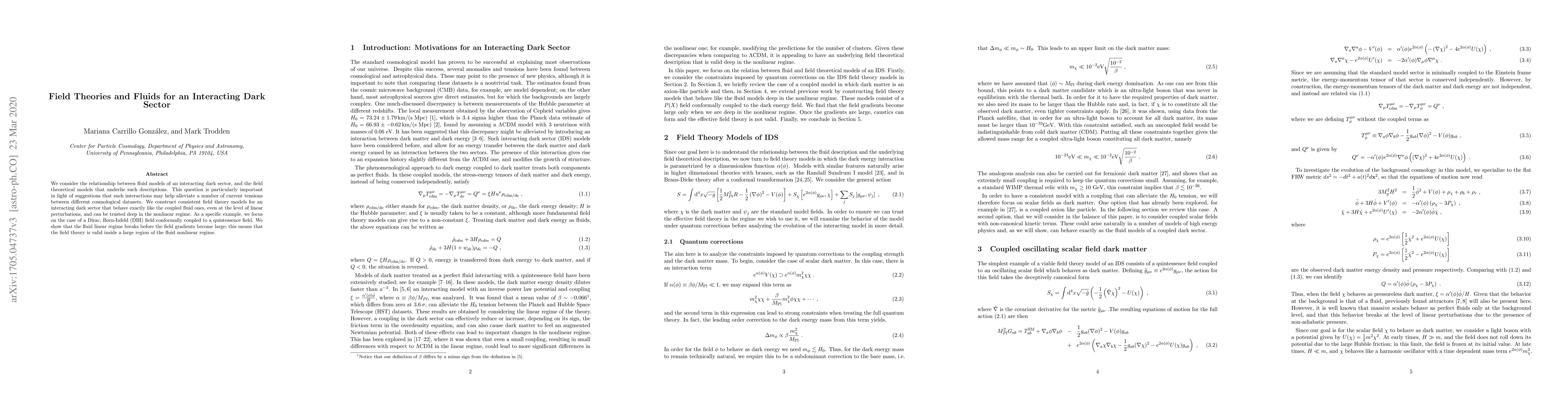 We consider the relationship between fluid models of an interacting dark sector, and the field theoretical models that underlie such descriptions. This question is particularly important in light of suggestions that such interactions may help alleviate a number of current tensions between different cosmological datasets. We construct consistent field theory models for an interacting dark sector that behave exactly like the coupled fluid ones, even at the level of linear perturbations, and can be trusted deep in the nonlinear regime. As a specific example, we focus on the case of a Dirac, Born-Infeld (DBI) field conformally coupled to a quintessence field. We show that the fluid linear regime breaks before the field gradients become large; this means that the field theory is valid inside a large region of the fluid nonlinear regime.