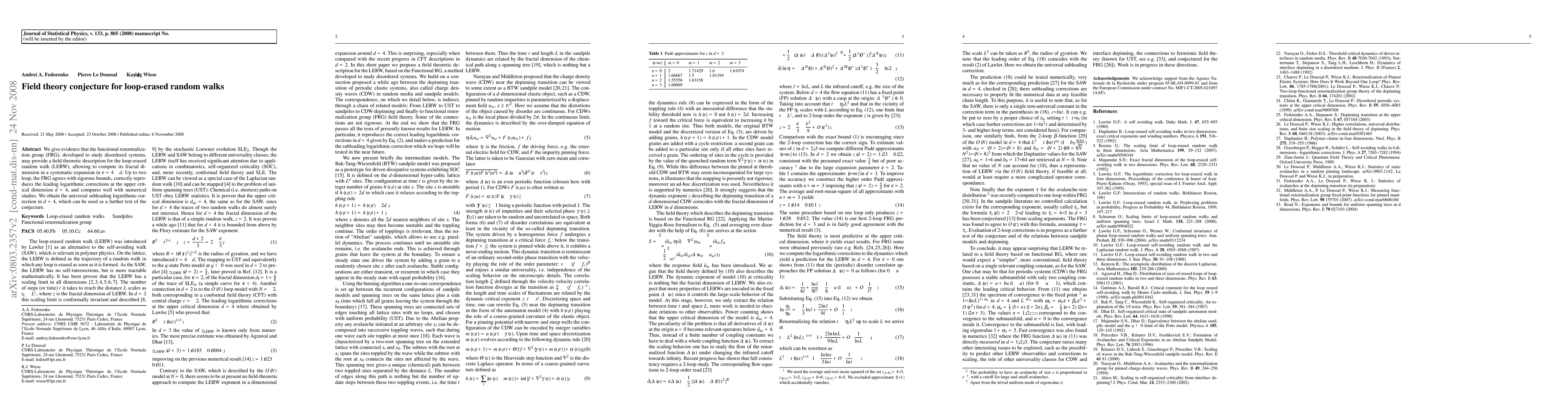 This research paper proposes that functional renormalization group theory can describe loop-erased random walks, allowing for the calculation of its fractal dimension through a systematic expansion in epsilon=4-d. The results agree with rigorous bounds and numerical studies up to two loops.