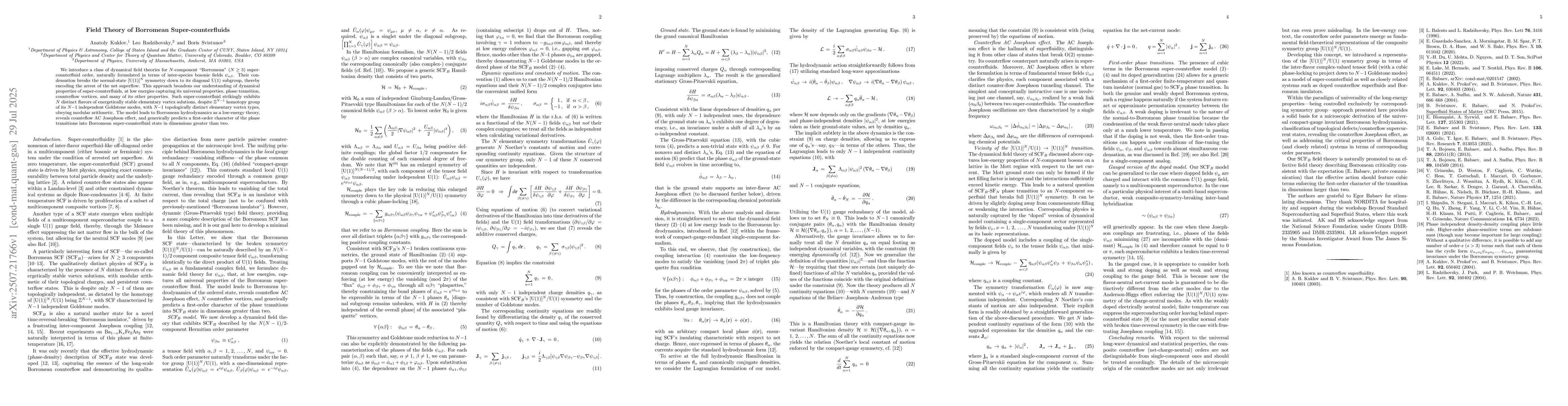 The research introduces a class of dynamical field theories for N-component Borromean super-counterfluids, formulated using inter-species bosonic fields ψαβ, to study their low-energy properties, phase transitions, and vortex solutions.