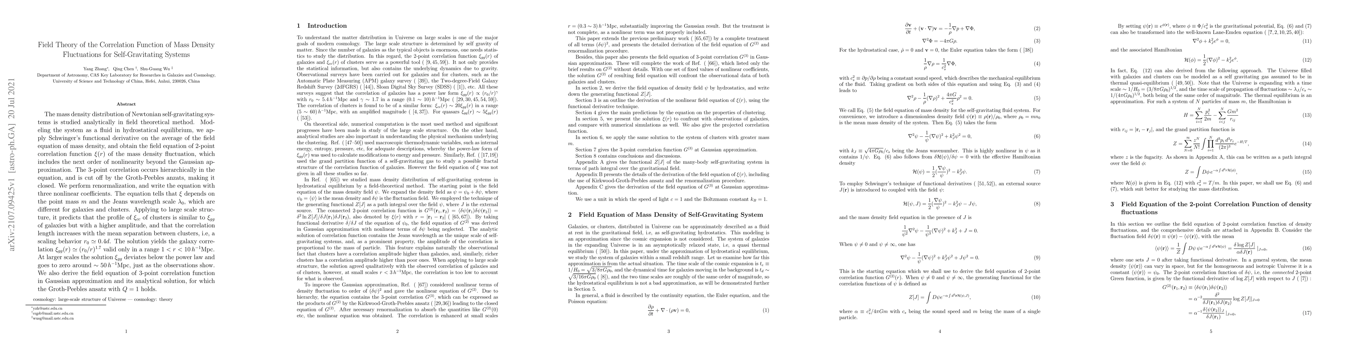 equation of 2-point correlation function $\xi(r)$ of the mass density