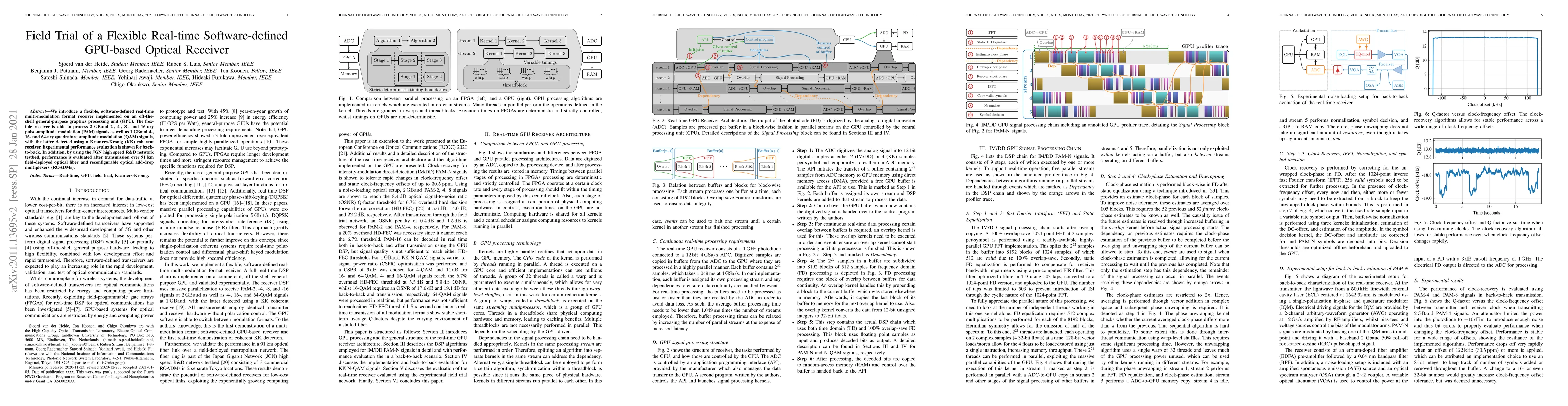 This paper presents a flexible, software-defined GPU-based optical receiver capable of processing various multi-modulation formats, and demonstrates its performance through both back-to-back tests and a 91 km field trial over deployed optical fiber networks.