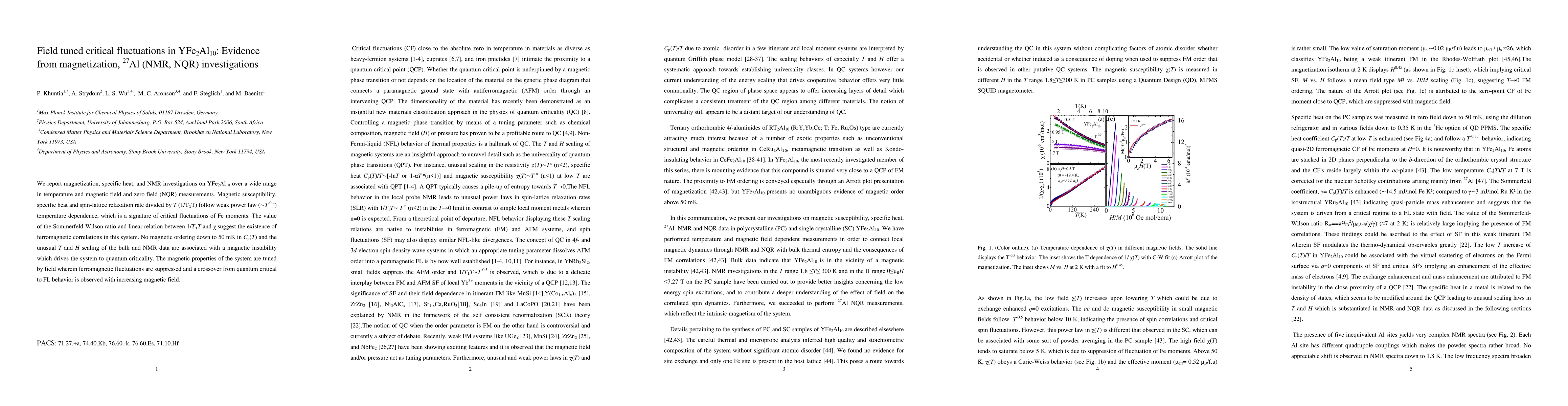 This paper investigates YFe2Al10 using magnetization, specific heat, and NMR techniques, revealing critical fluctuations in Fe moments and ferromagnetic correlations. The system exhibits a magnetic instability leading to quantum criticality, with field tuning suppressing ferromagnetic fluctuations and inducing a crossover to Fermi liquid behavior.