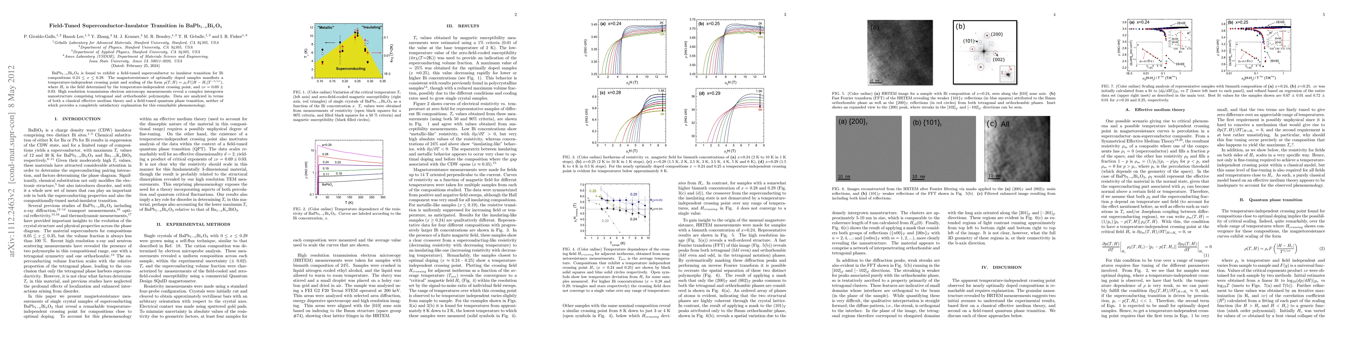 This paper investigates the field-tuned superconductor-insulator transition in BaPb$_{1-x}$Bi$_x$O$_3$ for Bi compositions between 0.24 and 0.29, revealing a temperature-independent crossing point in magnetoresistance and complex intergrown nanostructures. Despite analysis using effective medium theory and quantum phase transition models, a complete explanation for the observed phenomena remains elusive.