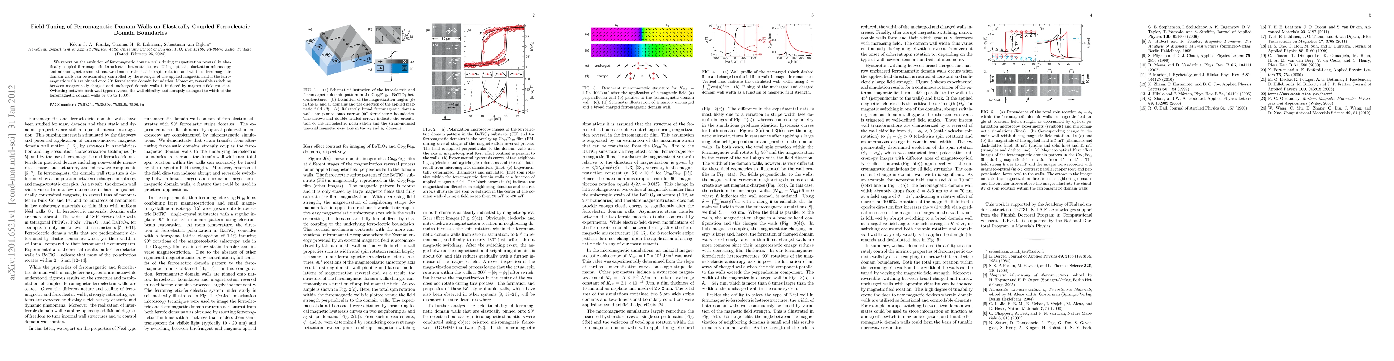 This study explores how the shape and movement of ferromagnetic domain walls can be precisely manipulated by magnetic fields in heterostructures where ferromagnetic and ferroelectric domains are elastically coupled, revealing a method to control domain wall chirality and width via domain boundary pinning.