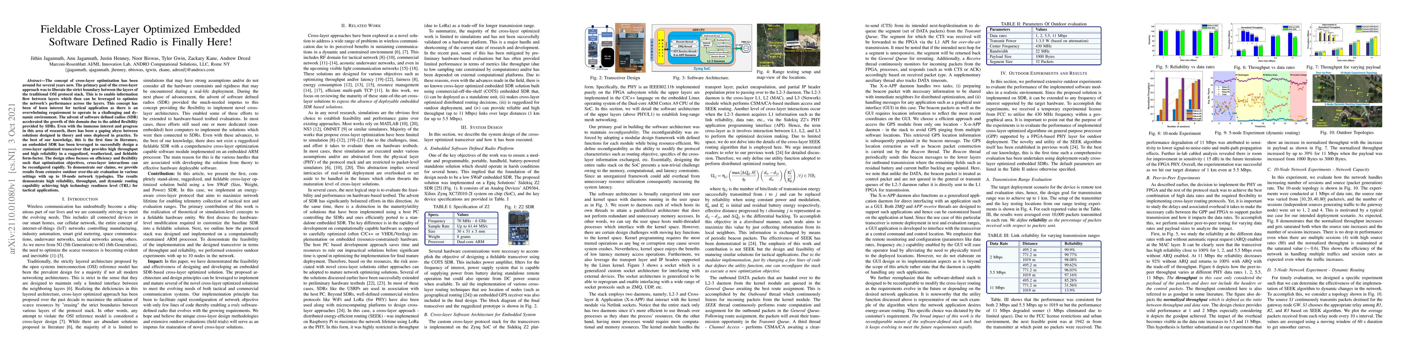 The concept of cross-layer optimization has been around for several years now. The primary goal of the cross-layer approach was to liberate the strict boundary between the layers of the traditional OSI protocol stack. This is to enable information flow between layers which then can be leveraged to optimize the network's performance across the layers. This concept has been of keen interest for tactical application as there is an overwhelming requirement to operate in a challenging and dynamic environment. The advent of software defined radios (SDR) accelerated the growth of this domain due to the added flexibility provided by SDRs. Even with the immense interest and progress in this area of research, there has been a gaping abyss between solutions designed in theory and ones deployed in practice. To the best of our knowledge, this is the first time in literature, an embedded SDR has been leveraged to successfully design a cross-layer optimized transceiver that provides high throughput and high reliability in a ruggedized, weatherized, and fieldable form-factor. The design ethos focuses on efficiency and flexibility such that optimization objectives, cross-layer interactions can be reconfigured rapidly. To demonstrate our claims, we provide results from extensive outdoor over-the-air evaluation in various settings with up to 10-node network typologies. The results demonstrate high reliability, throughput, and dynamic routing capability achieving high technology readiness level (TRL) for tactical applications.