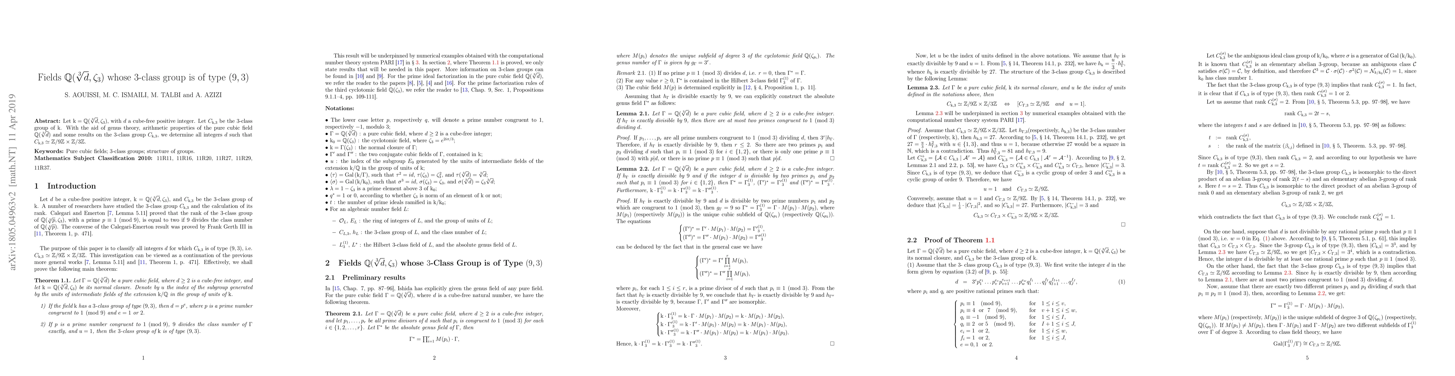 Let $\mathrm{k}=\mathbb{Q}(\sqrt[3]{d},\zeta_3)$, with $d$ a cube-free positive integer. Let $C_{\mathrm{k},3}$ be the $3$-component of the class group of $\mathrm{k}$. By the aid of genus theory, arithmetic proprieties of the pure cubic field $\mathbb{Q}(\sqrt[3]{d})$ and some results on the $3$-class group $C_{\mathrm{k},3}$, we are moving towards the determination of all integers $d$ such that $C_{\mathrm{k},3} \simeq \mathbb{Z}/9\mathbb{Z}\times \mathbb{Z}/3\mathbb{Z}$.