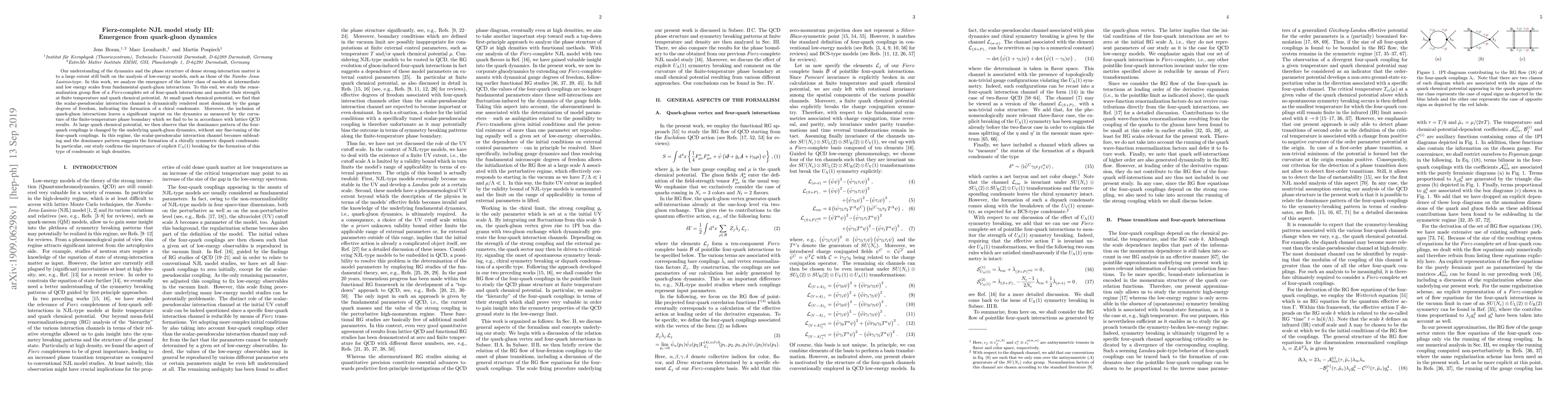 Our understanding of the dynamics and the phase structure of dense strong-interaction matter is to a large extent still built on the analysis of low-energy models, such as those of the Nambu-Jona-Lasinio-type. In this work, we analyze the emergence of the latter class of models at intermediate and low energy scales from fundamental quark-gluon interactions. To this end, we study the renormalization group flow of a Fierz-complete set of four-quark interactions and monitor their strength at finite temperature and quark chemical potential. At small quark chemical potential, we find that the scalar-pseudoscalar interaction channel is dynamically rendered most dominant by the gauge degrees of freedom, indicating the formation of a chiral condensate. Moreover, the inclusion of quark-gluon interactions leaves a significant imprint on the dynamics as measured by the curvature of the finite-temperature phase boundary which we find to be in accordance with lattice QCD results. At large quark chemical potential, we then observe that the dominance pattern of the four-quark couplings is changed by the underlying quark-gluon dynamics, without any fine-tuning of the four-quark couplings. In this regime, the scalar-pseudoscalar interaction channel becomes subleading and the dominance pattern suggests the formation of a chirally symmetric diquark condensate. In particular, our study confirms the importance of explicit $U_{\mathrm{A}}(1)$ breaking for the formation of this type of condensate at high densities.